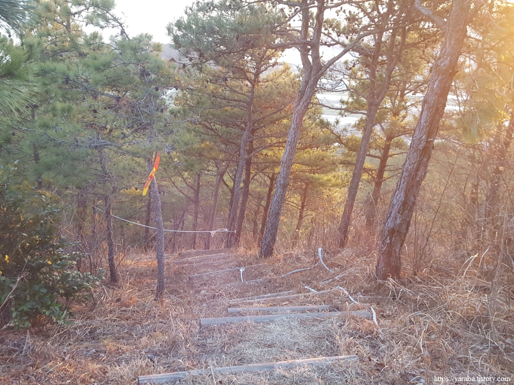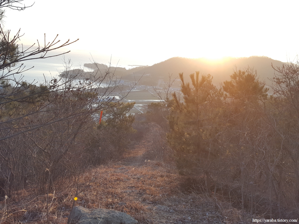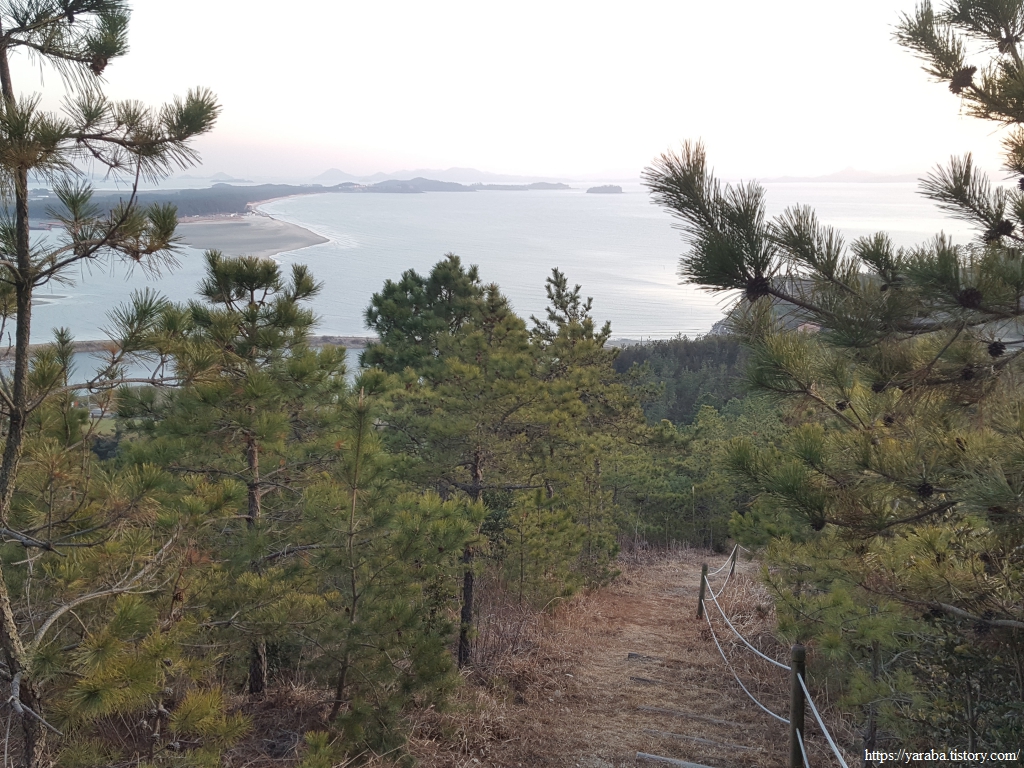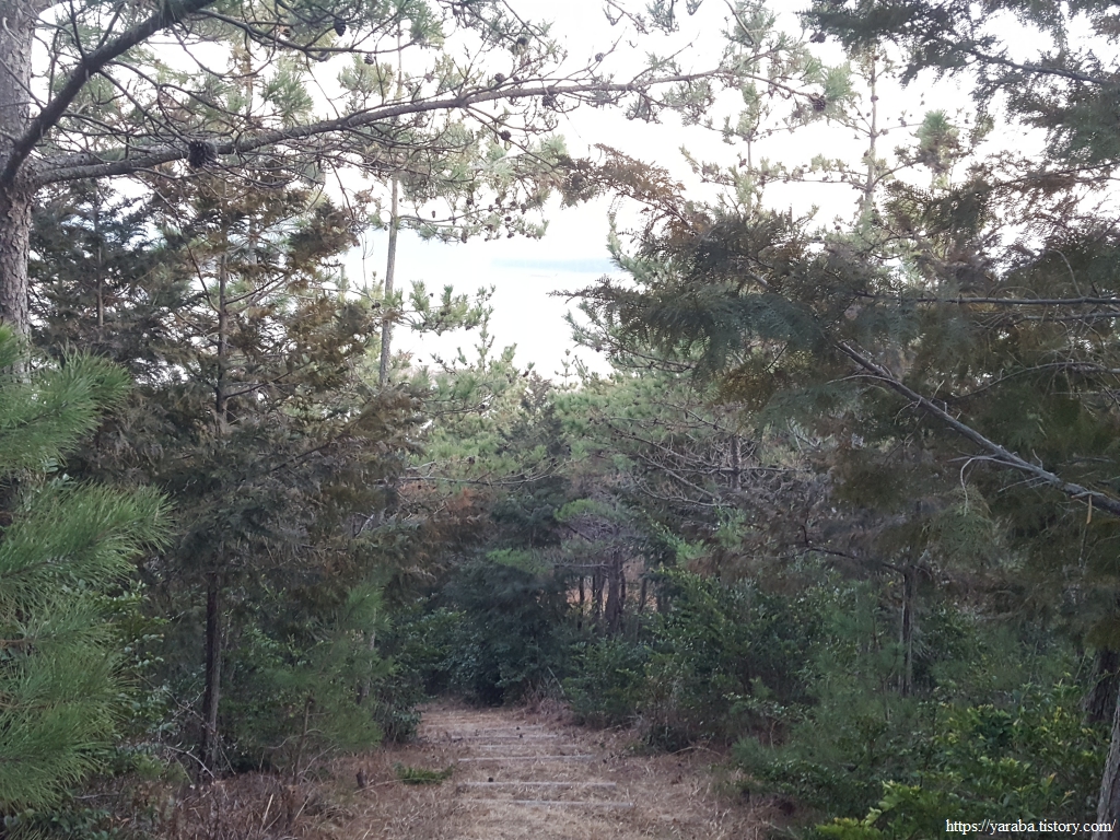 남쪽으로 하산하는 길은 우전도의 해안선을 풍경으로 삼는다.
