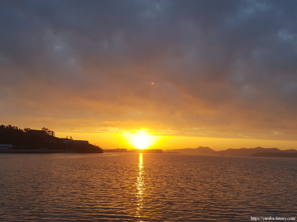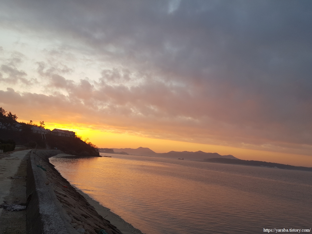오산마을 해변에서 이른 아침 시작하는 여정은 동쪽의 붉은 하늘과 함께한다. 어제저녁은 황금빛 서쪽 하늘과 함께 했는데 오늘 아침에는 저녁 석양보다 더 붉은 하늘을 동쪽에서 만난다.