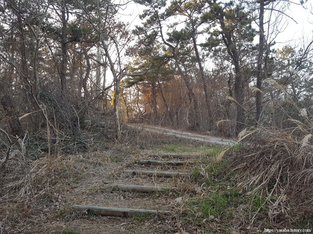 증도면사무소에서 등산로로 올라왔던 길은 포장 임도를 만나서 가벼운 산책로 걷기를 이어간다.