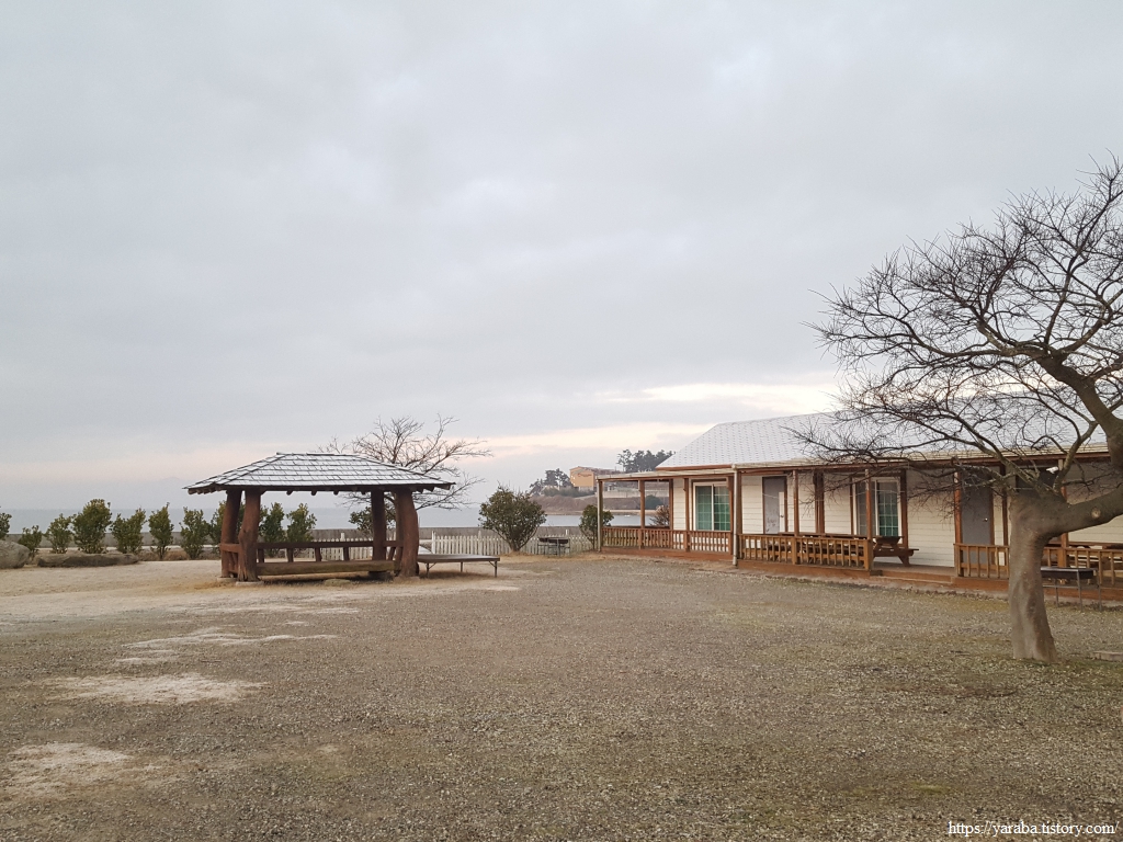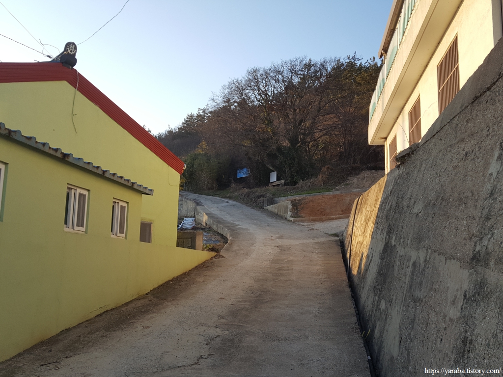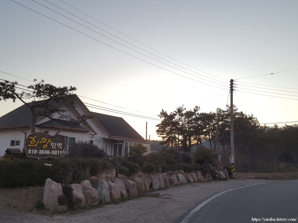 길은 민박을 끼고 좌측으로 돌아 해변으로 나가는데, 우리가 하룻밤 쉬어간 숙소가 바로 이곳이었다. 나름 깨끗했다. 다행히 해가 완전히 지기 전에 산을 내려올 수 있었다. 다음날 아침 민박집 지붕에는 하얗게 서리가 내려앉았다. 겨울은 겨울이다.