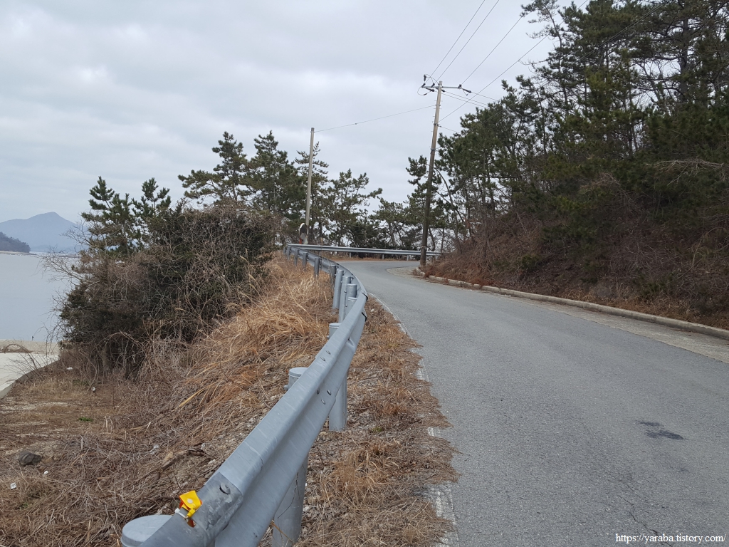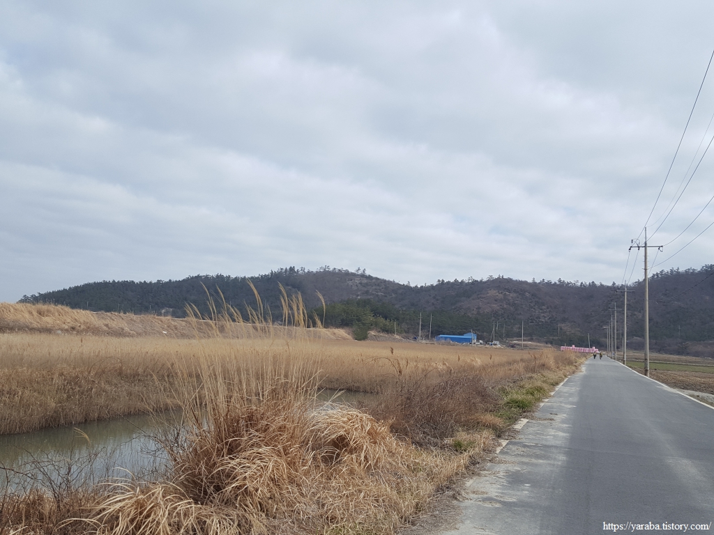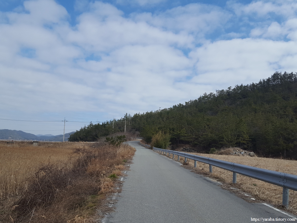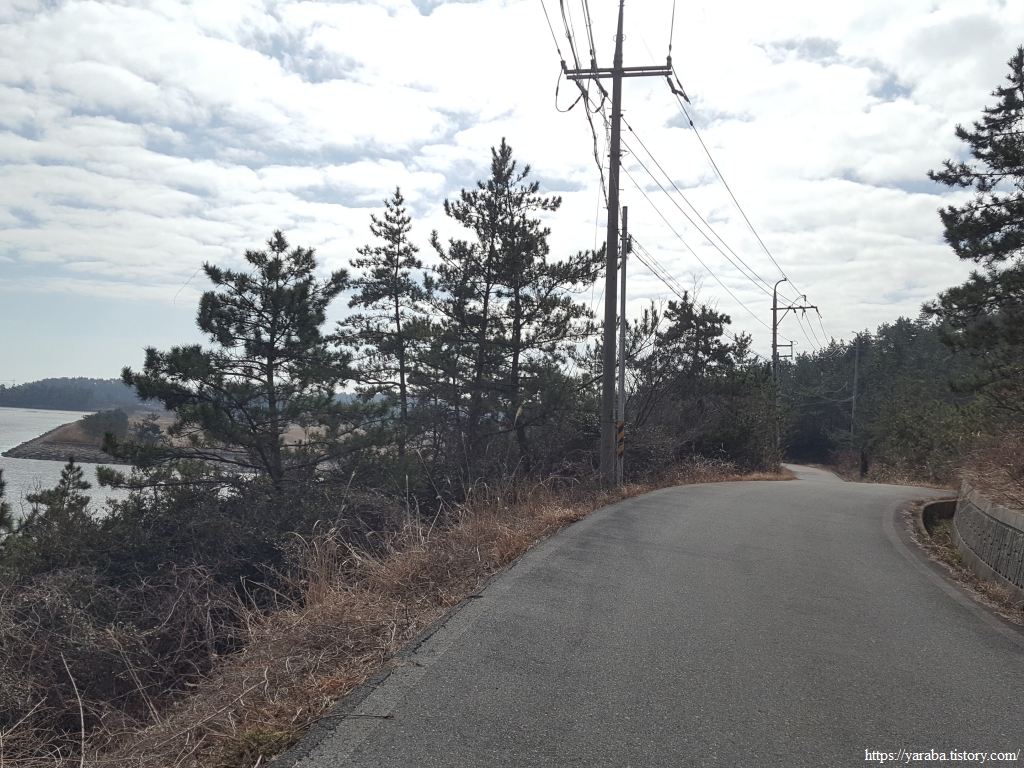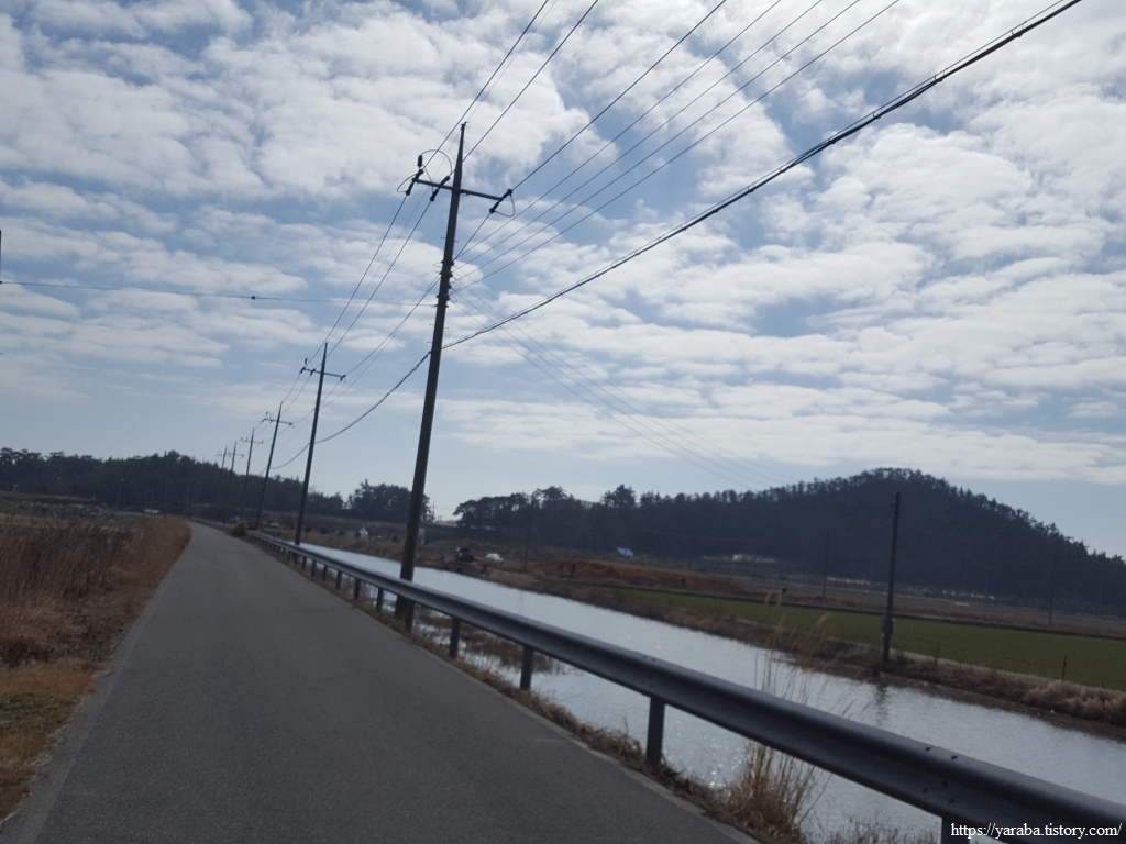방조제길을 지나면 염산마을로 이어지는 도로를 따라서 염산마을 방향으로 이동한다.