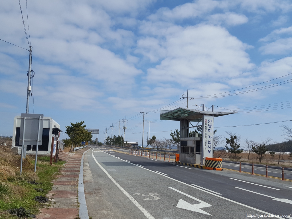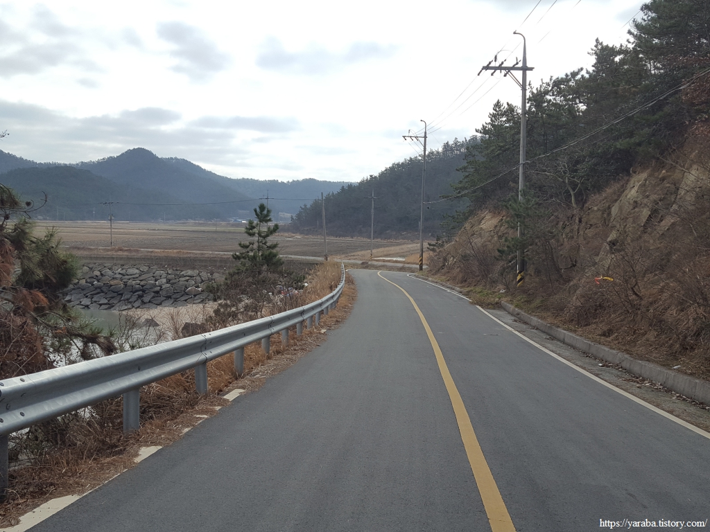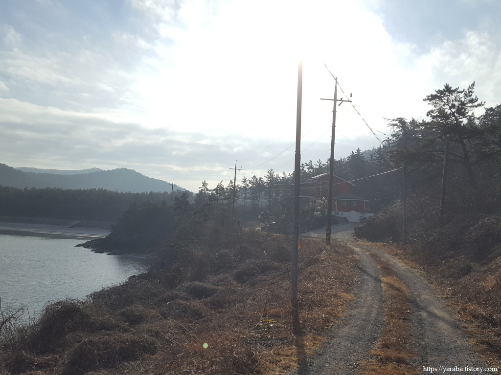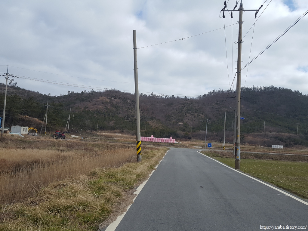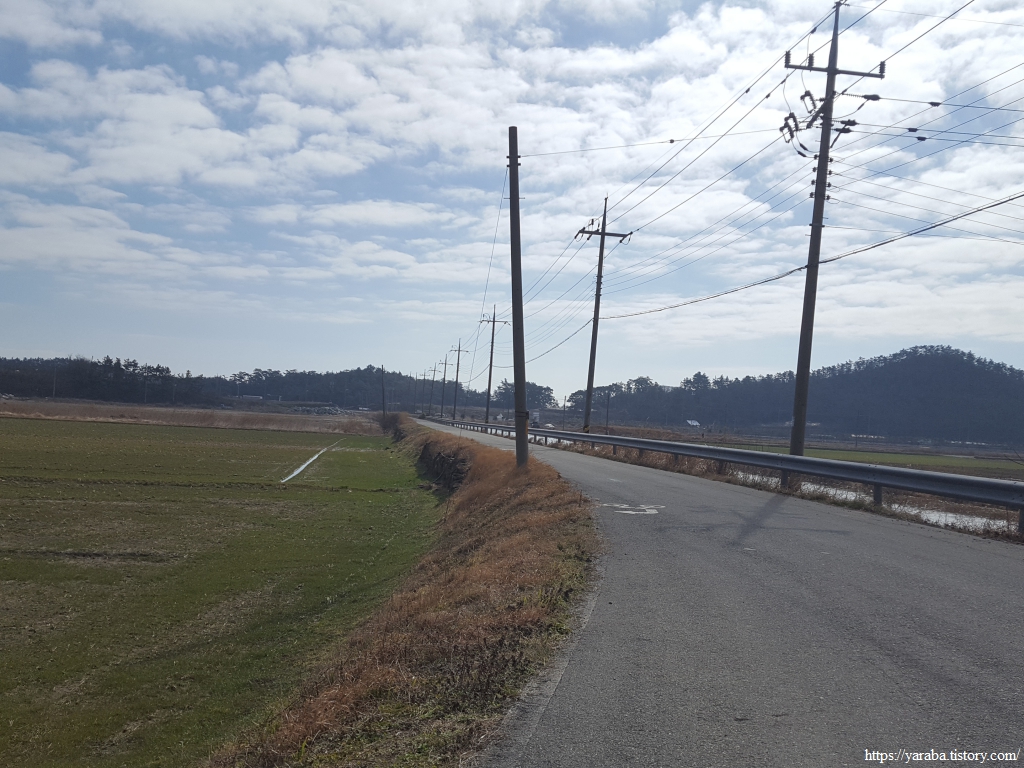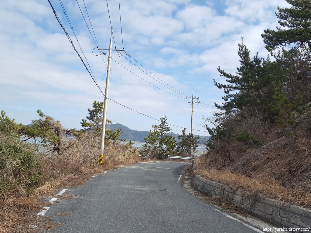 방조제길을 지나면 염산마을로 이어지는 도로를 따라서 염산마을 방향으로 이동한다.