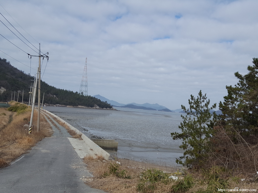 안골을 지난 길은 사옥도와 증도를 연결하고 있는 송전탑을 뒤로하고 도로를 따라서 광암마을로 향한다. 28코스도 얼마 남지 않았다.
