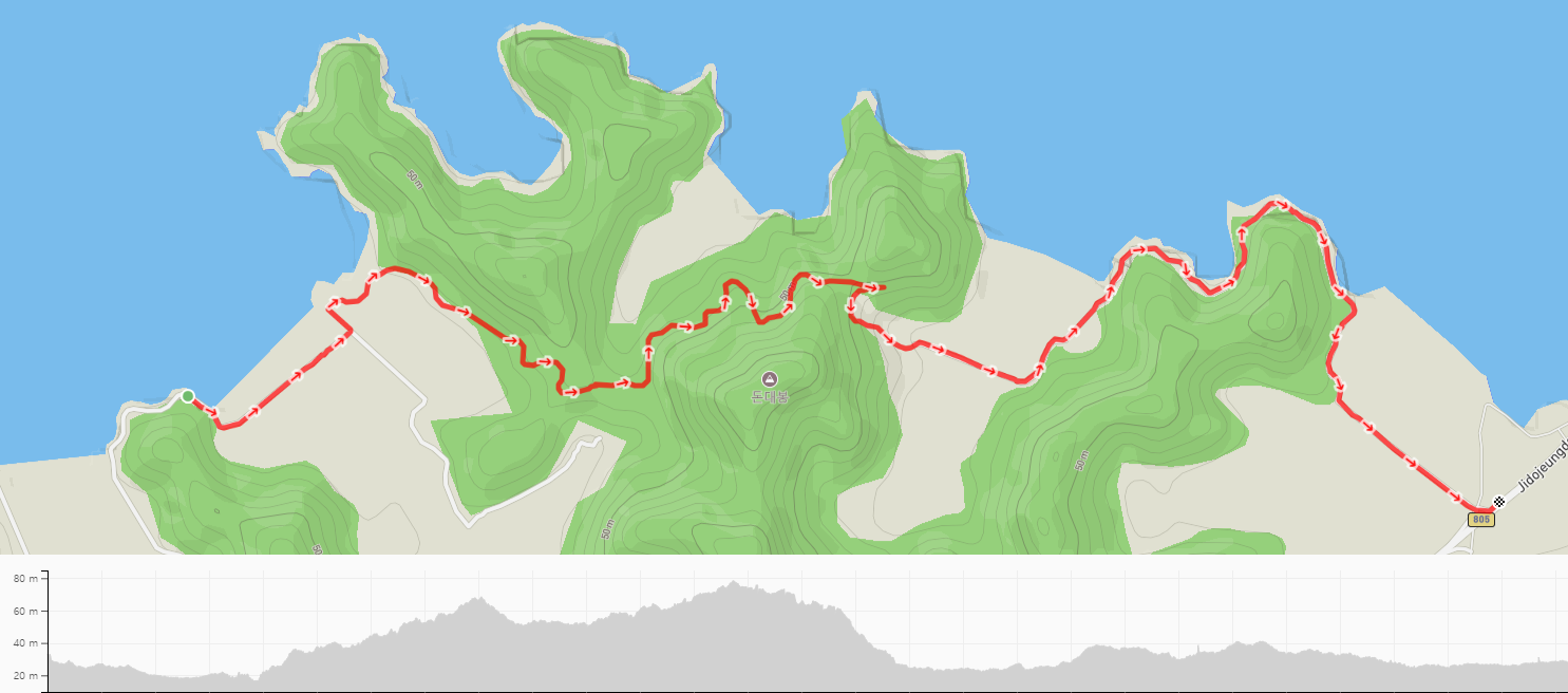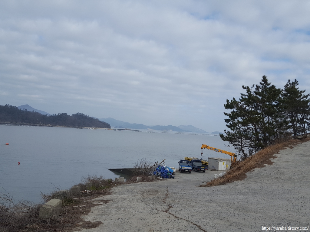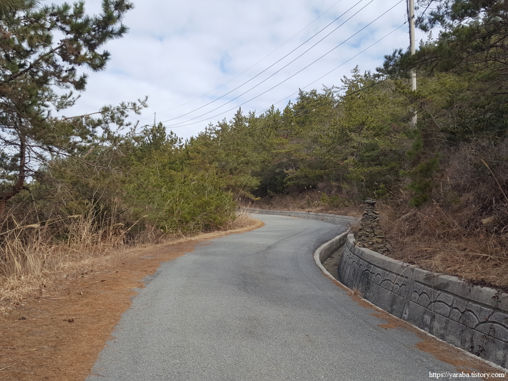 급한 용무도 해결하고 잠시 쉬어 갔던 곳이다. 해안길을 걸으며 엉덩이 붙이고 잠시 쉴 곳을 찾기 어려웠는데 이곳에서 목도 축이고 잠시 쉬어 갈 수 있었다. 돈대봉 자락의 고갯길을 넘어온 길은 이곳부터 산을 내려가며 급격히 고도를 낮춘다.