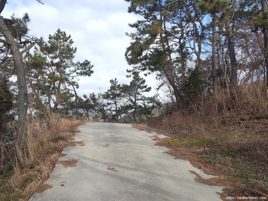 돈대봉(137m) 임도를 오르기 시작한다. 통사골재라는 고개를 넘어가는데, 염산마을로 가려면 지금도 이런 길을 통과해야 하니 염산마을을 증도의 오지라고 부르는 것도 이해가 된다.