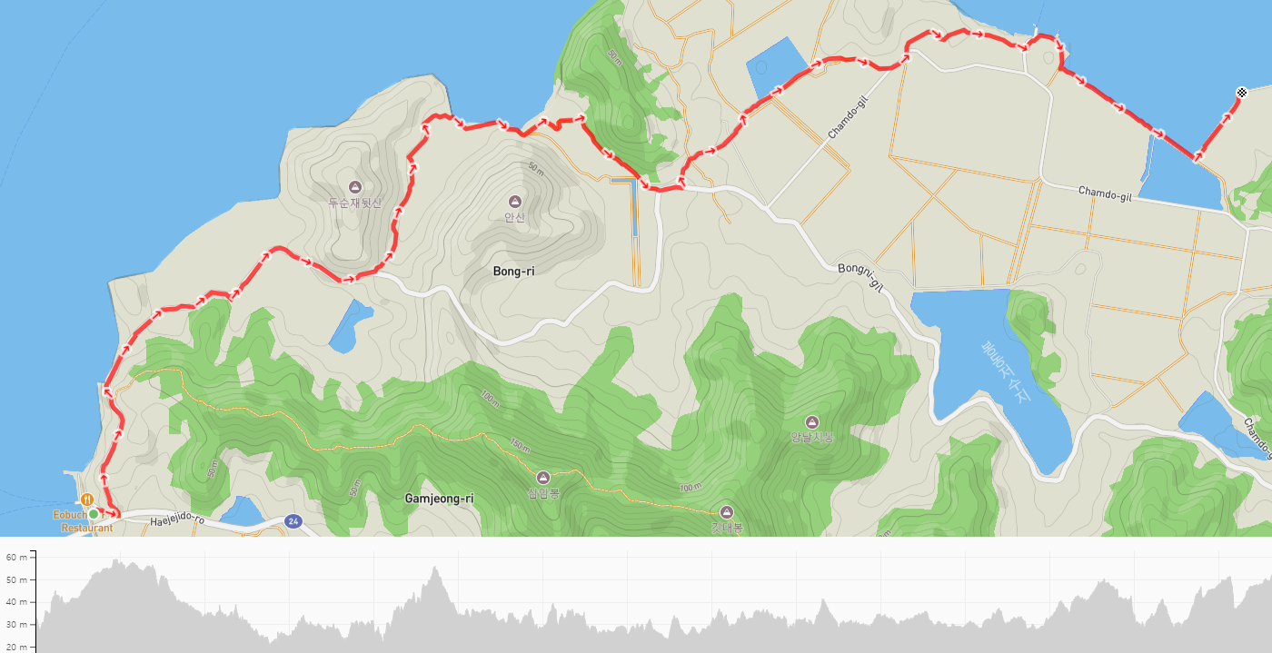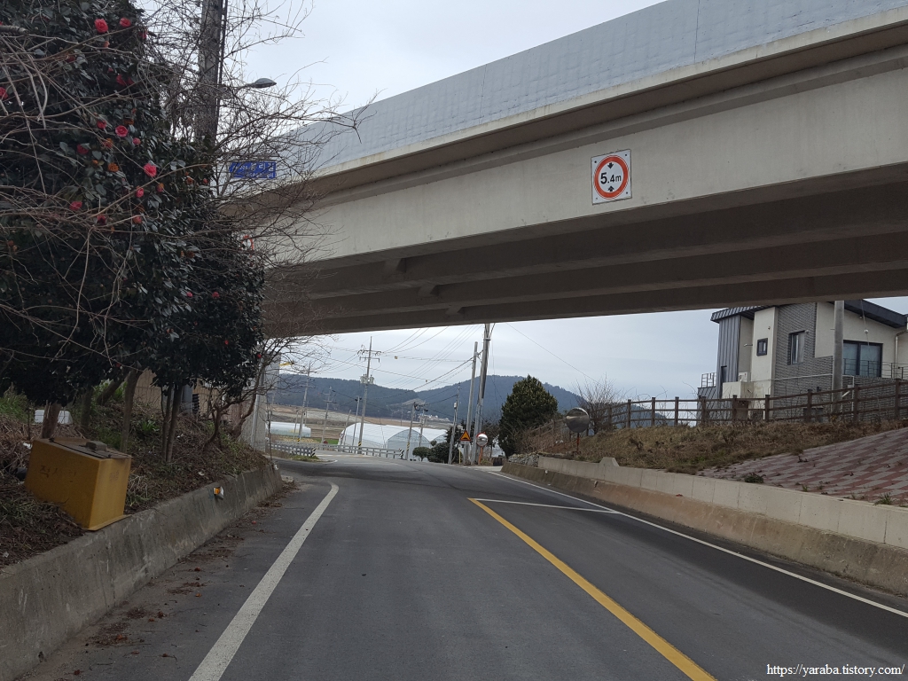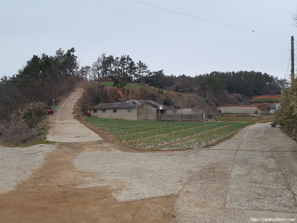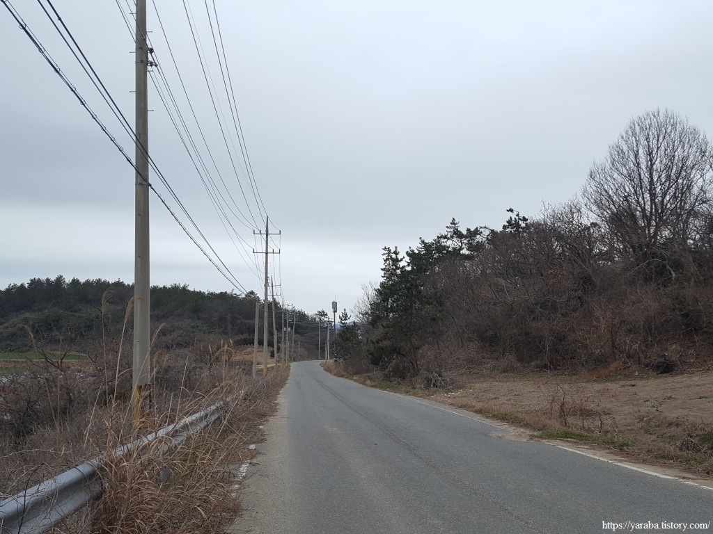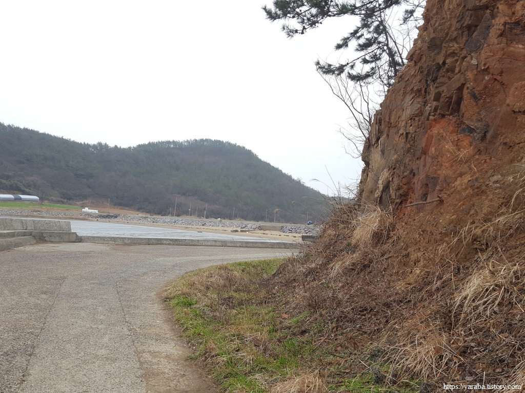 북쪽 해안 끝의 마을을 지난 길은 안산 아랫자락 해변으로 이어진 길을 따라서 동쪽으로 향한다.