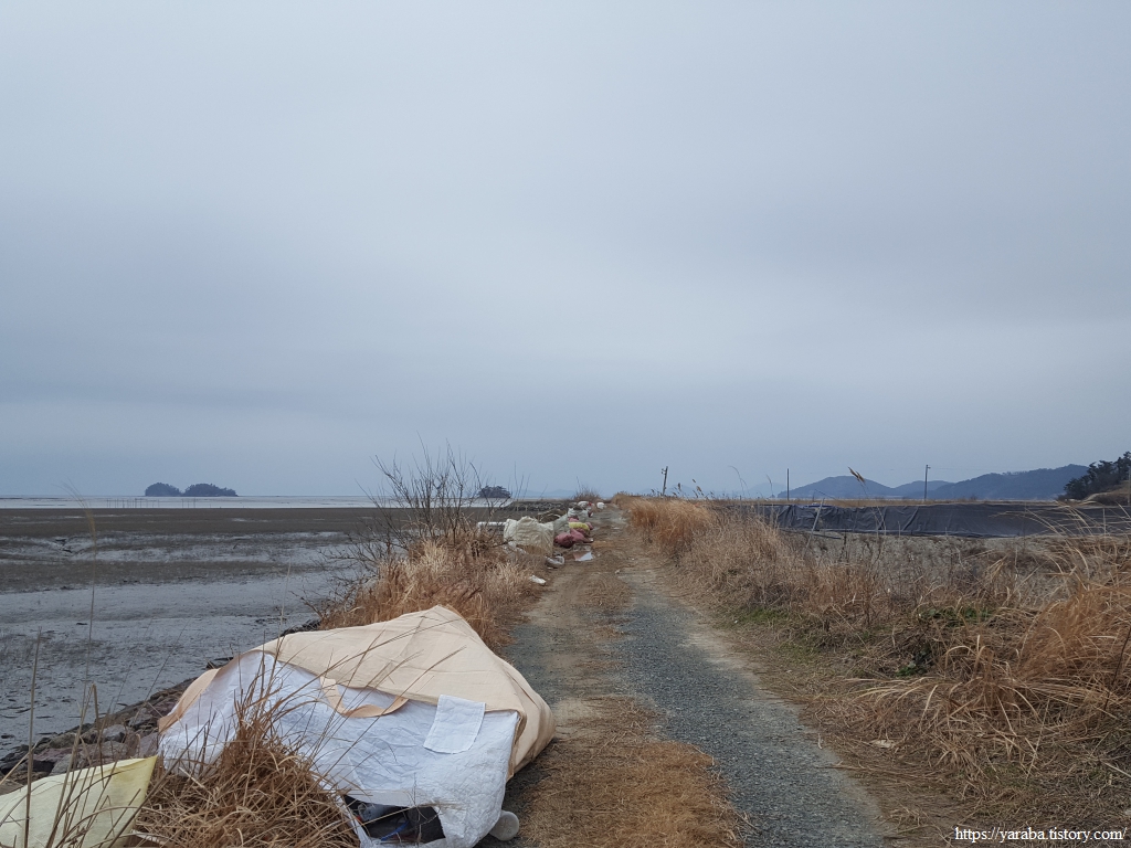 방조제 길에 쌓아 놓은 엄청난 해양쓰레기 더미들을 보니 억 소리가 나온다. 신안군에서는 주민들이 주기적으로 갯벌에 흘러 들어온 해양쓰레기를 치운다고 하는데 그 결과물인 모양이다. 신안 갯벌은 유네스코 세계자연유산이자 국내 최대의 습지보호지역이다. 인근 고득학생들은 갯벌 플로깅 활동도 한다고 한다. 누구는 버리고 누구는 치우는 것은 악순환이고 지속 가능하지 않다. 어민이나 여행객 모두 버리지 않았으면 하는 바람이다.