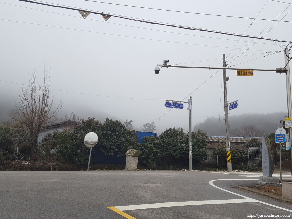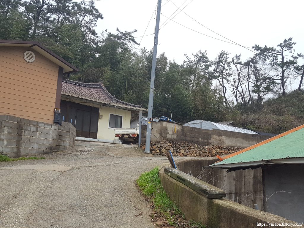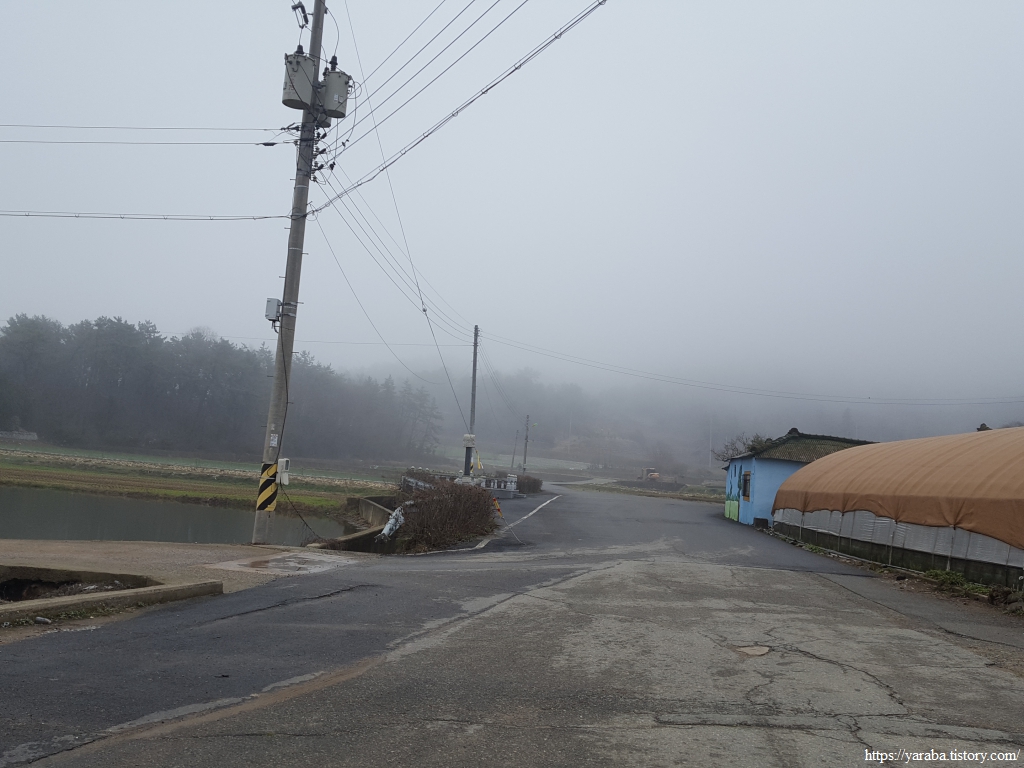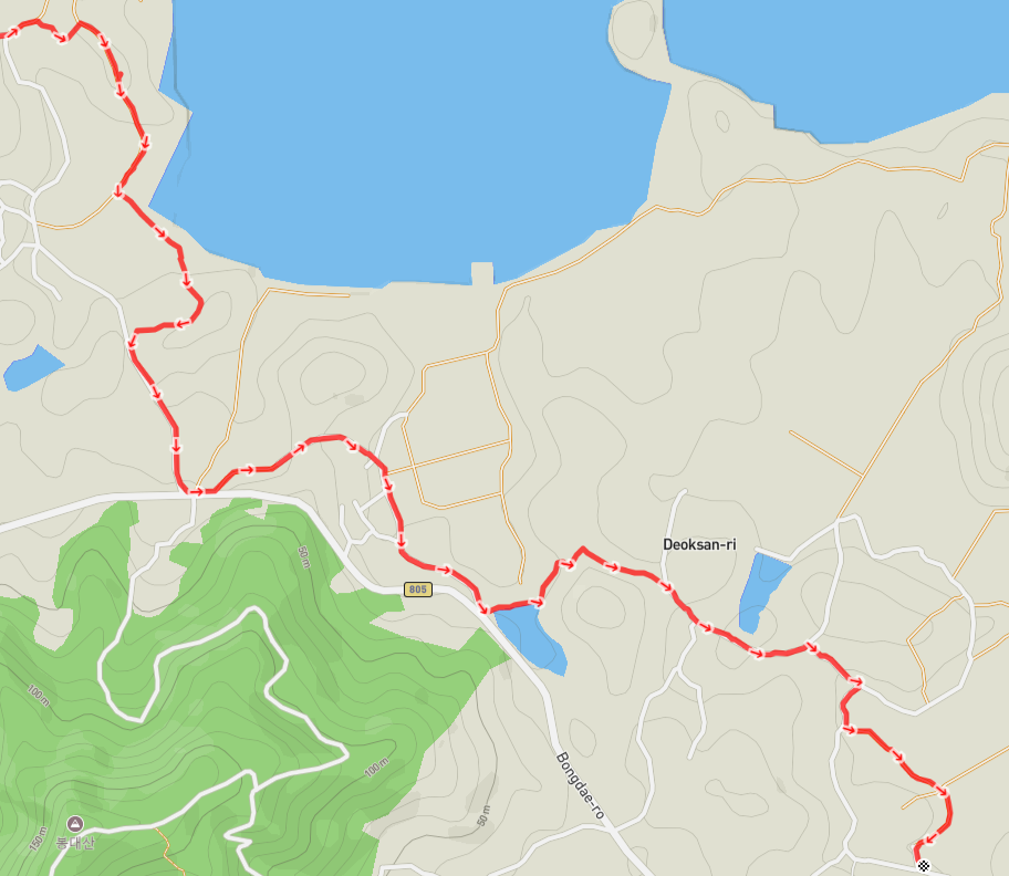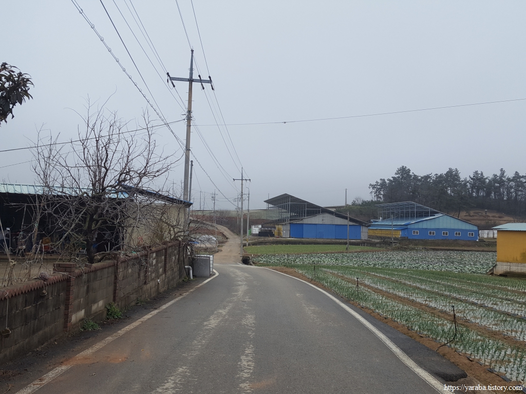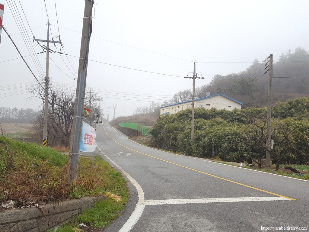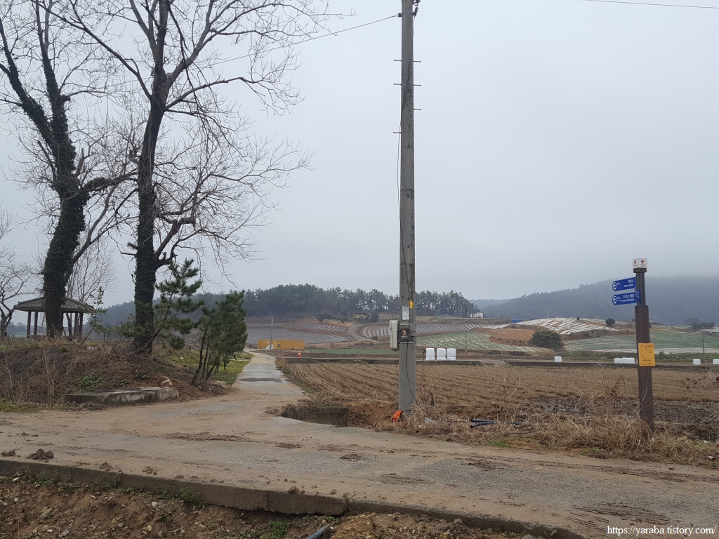 교차로를 지나서 얼마간 봉대로 도로를 따라 걷던 길은 다시 마을 안쪽 길로 들어간다. 갓길이 넓지 않은 도로이니 슬산마을 안으로 돌아가서 슬산제 저수지 인근에서 다시 봉대로 도로로 나온다.