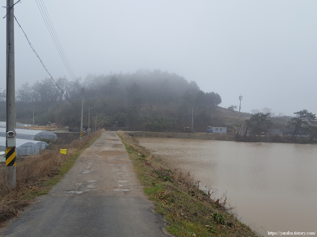 길은 슬산마을을 빠져나가 슬산제 저수지 방향으로 나간다. 봉대로 도로가 지나는 방향이다.