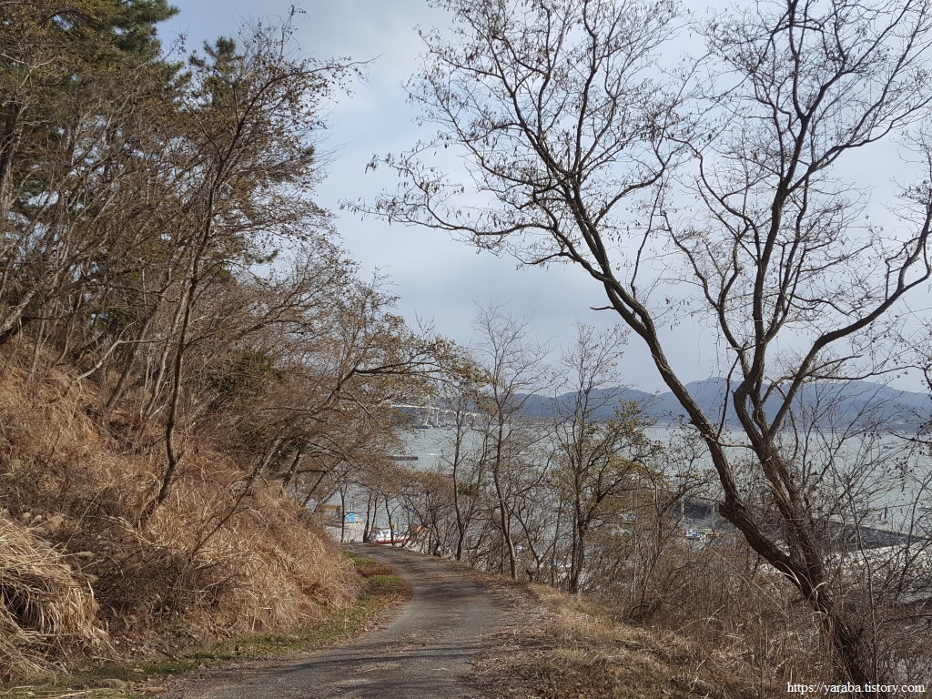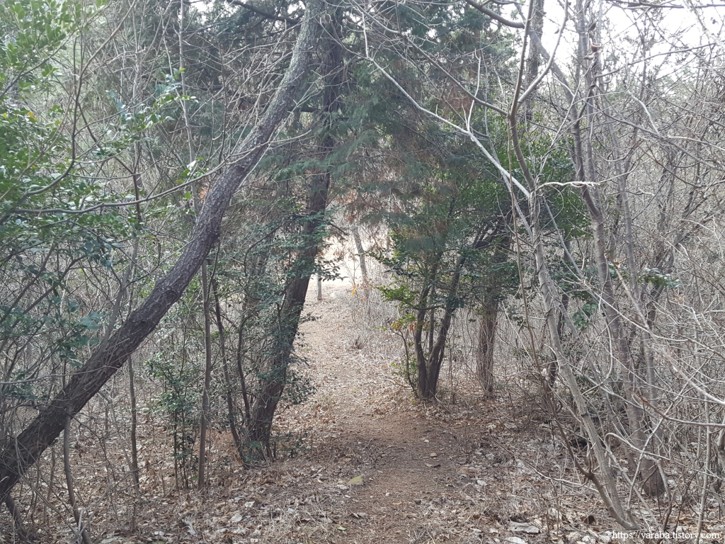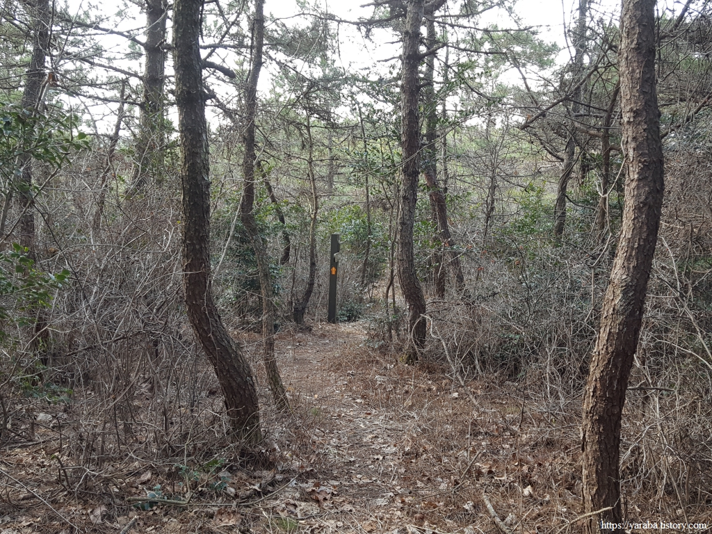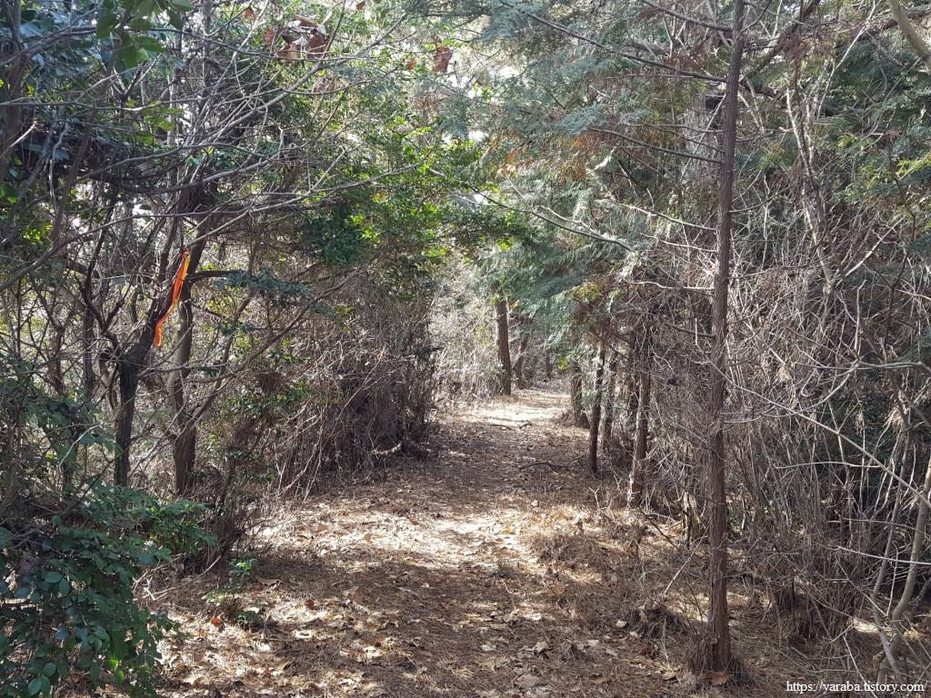 한동안 이어진 조릿대 터널길을 지나서 숲길을 이어간다. 좌측으로 바다가 살짝 보이기는 하지만 나무 숲으로 시야가 막히는 것이 지금은 차라리 낫다. 차가운 겨울바람을 숲이 막아주는 까닭이다.
