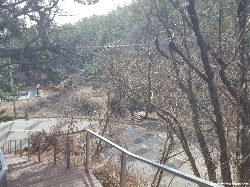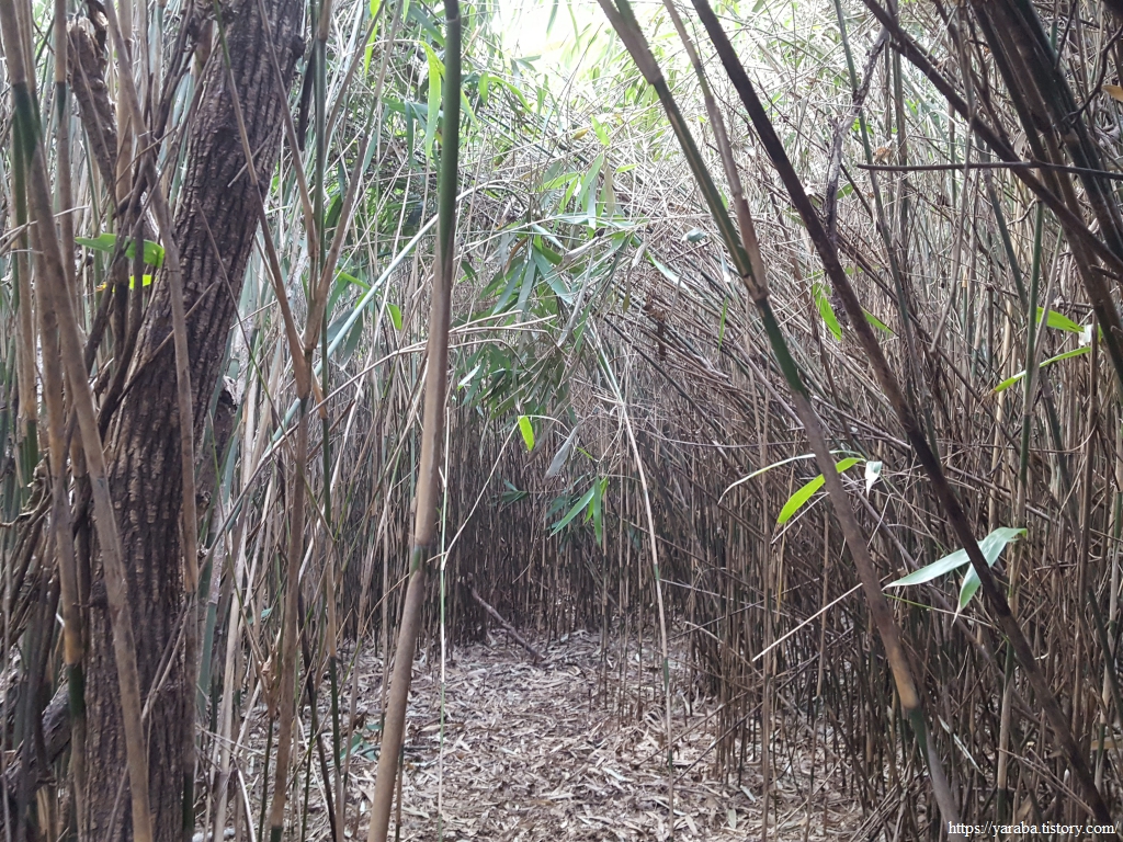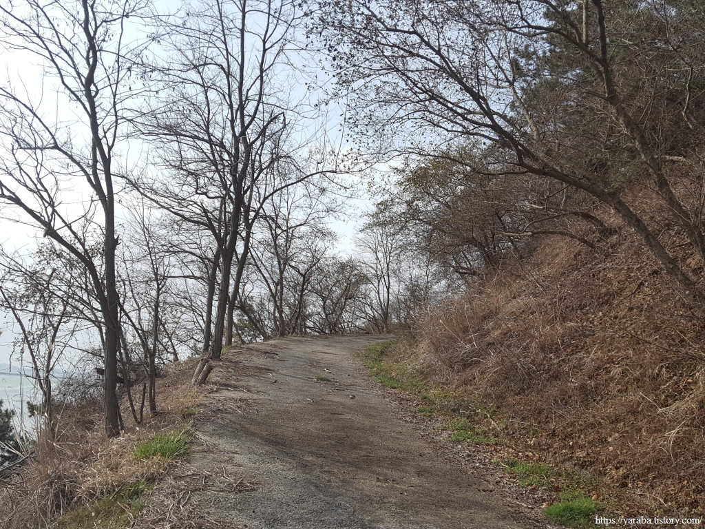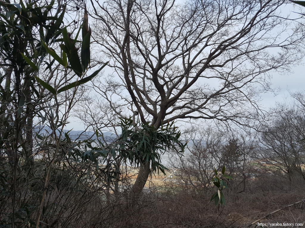 한동안 이어진 조릿대 터널길을 지나서 숲길을 이어간다. 좌측으로 바다가 살짝 보이기는 하지만 나무 숲으로 시야가 막히는 것이 지금은 차라리 낫다. 차가운 겨울바람을 숲이 막아주는 까닭이다.