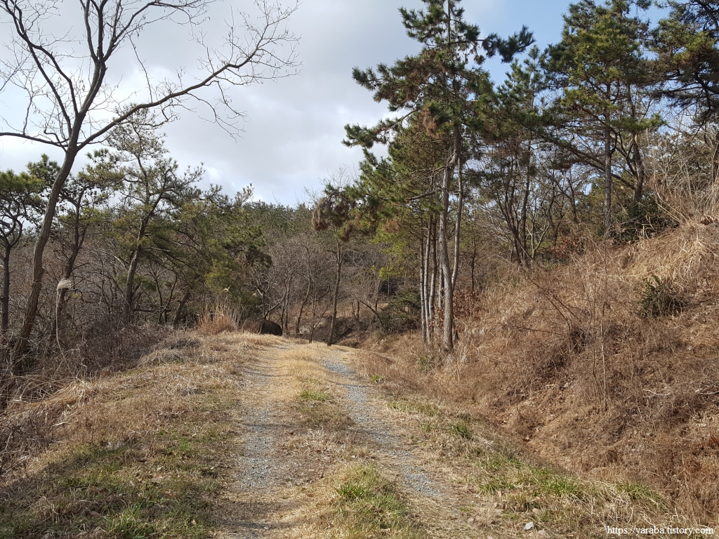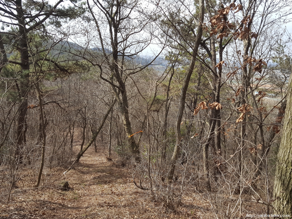 1백여 미터의 높지 않은 산이므로 일단 능선에 오르면 오르락내리락 하기는 하지만 능선을 걸으므로 어렵지 않은 숲길을 걸을 수 있다.