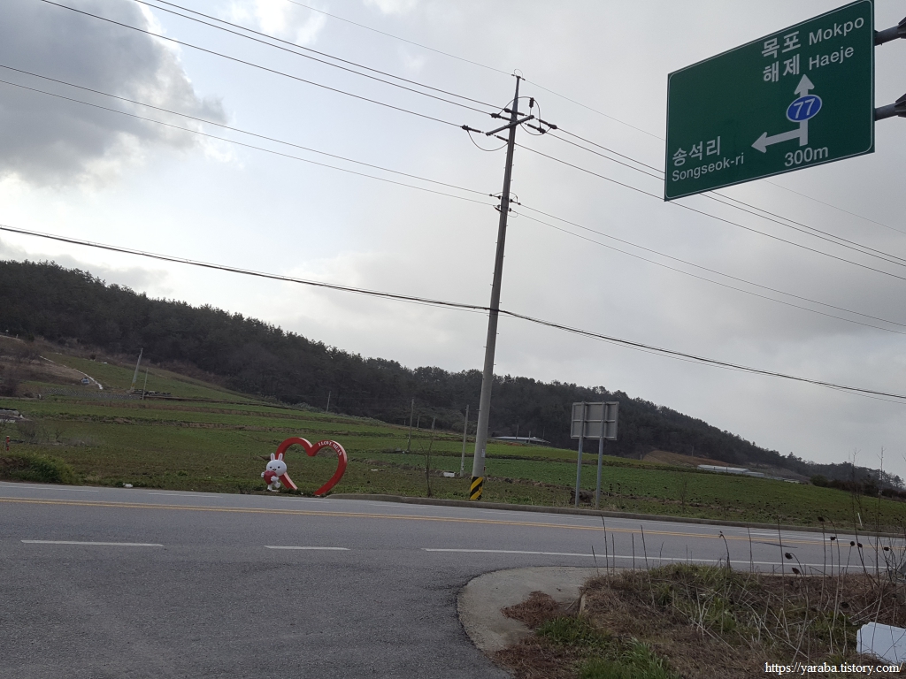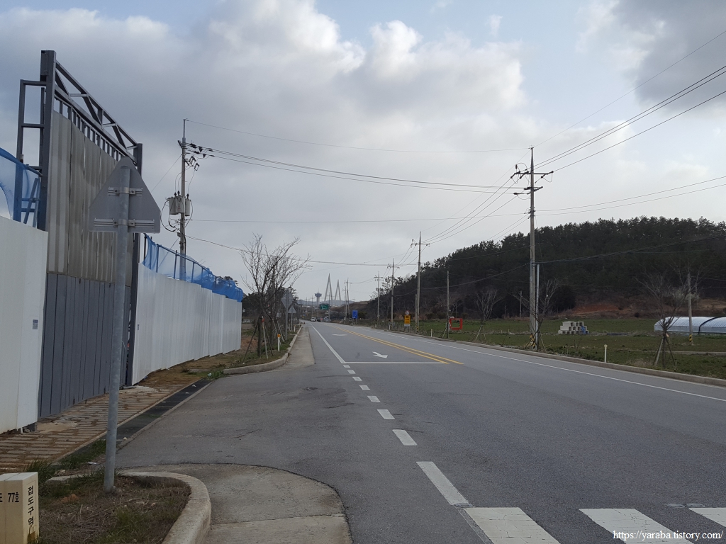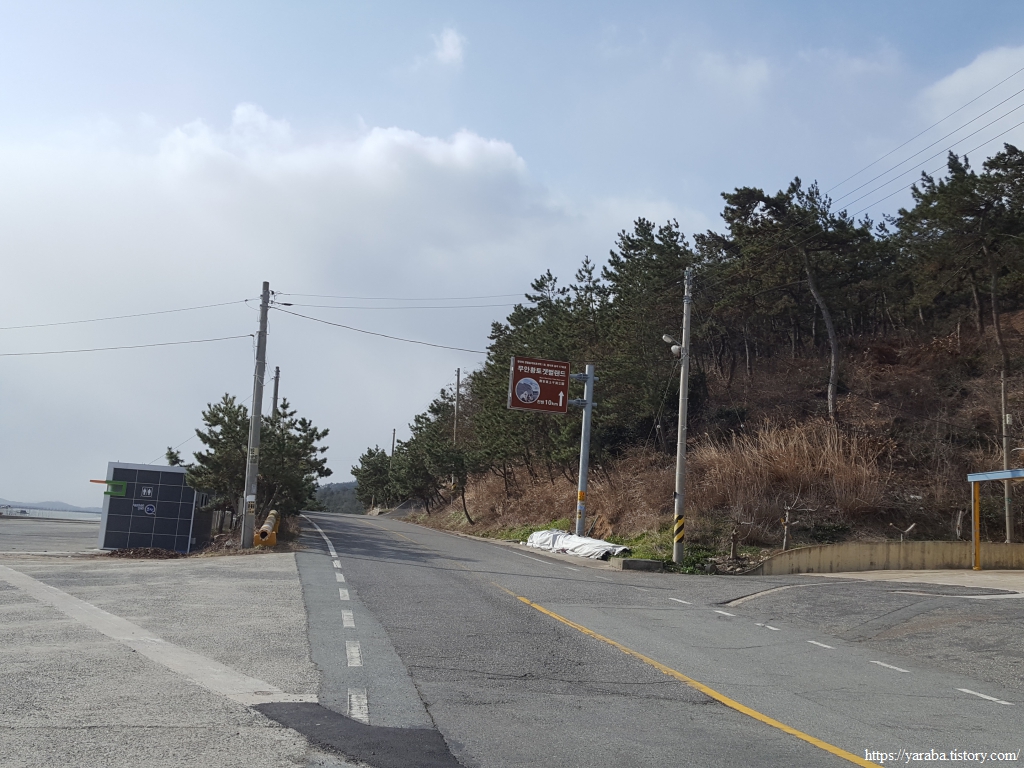 해안도로는 남쪽으로 무안황토갯벌랜드까지 쭉 이어지고 표지판에는 10Km라는 표식이 등장했지만 서해랑길 32코스는 종점인 무안황토갯벌랜드까지 해안도로 위에서 산 등성이를 걸어서 간다.