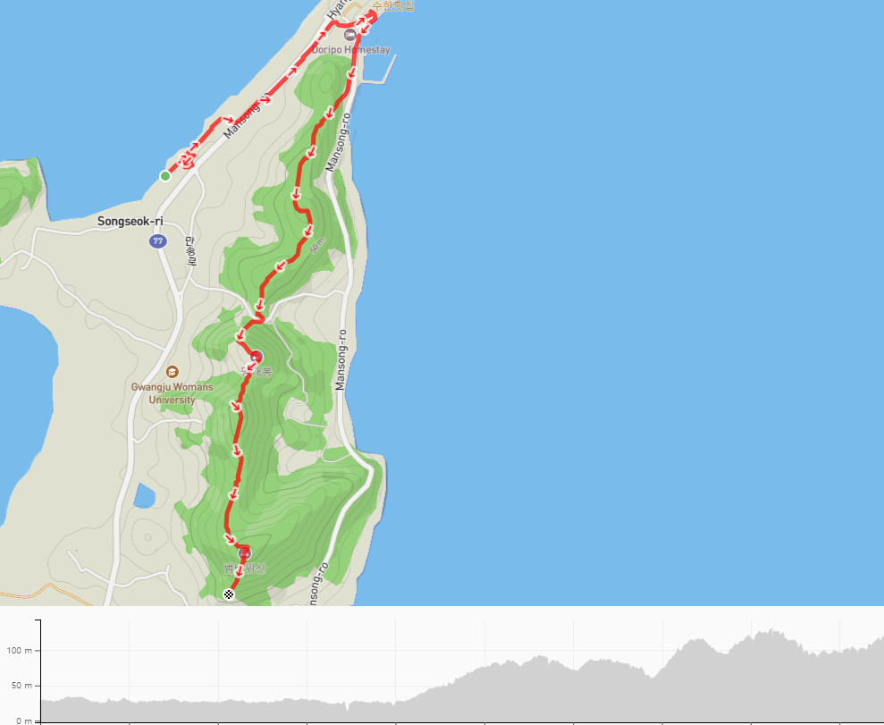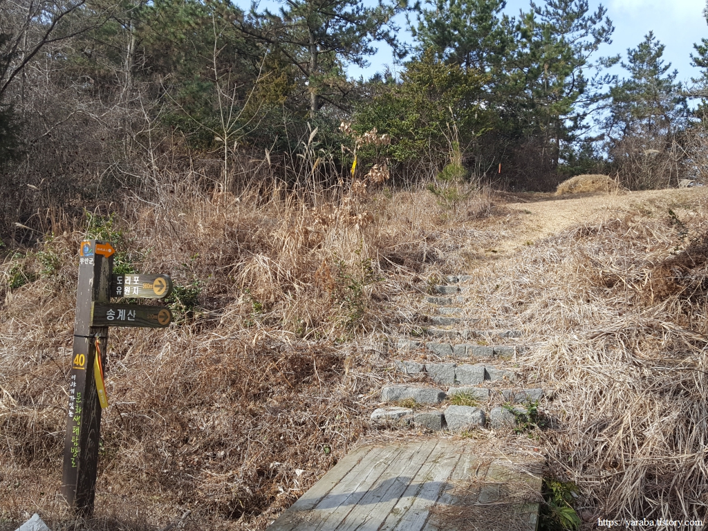 송계 해변에서 잠시 휴식을 취한 우리는 해변 끝자락에서 송계 해변을 빠져나간다.