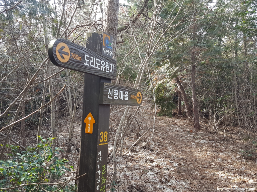 송계산 구간을 지나는 길에 "이야기가 있는 문화생태탐방로"라는 이름으로 길 표식을 세워 놓았는데, 길이 잘 정비된 산책길이다. "걷기 좋은 도시! 워커블시티(walkable city) 무안"이라는 슬로건과 무관하지 않아 보인다.