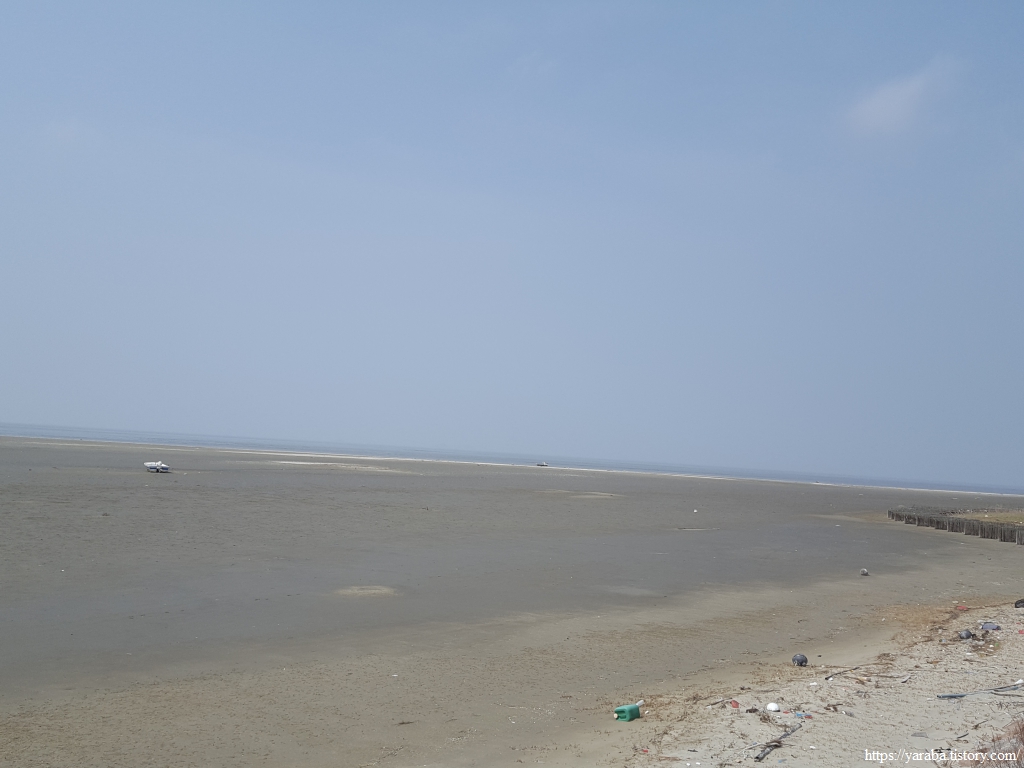 내륙이 아닌 먼바다와 접해 있는 해안선으로 나왔다. 모래 해변 너머로 수평선이 시야에 들어오는 곳이다.