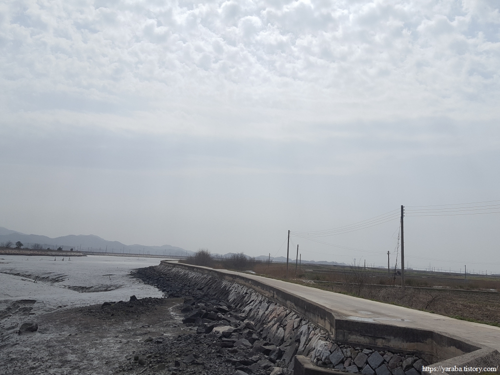 월평항을 지난 길은 서쪽으로 방향을 잡아 길을 이어간다. 시야에는 광활한 갯벌과 들판 풍경 만이 들어온다.