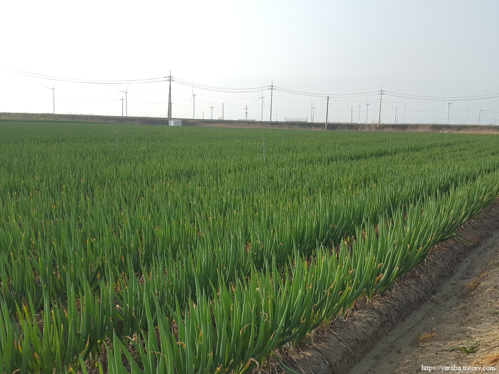 농로를 걷다 보니 영광에도 진도 못지않게 대파밭이 많았다. 눈 속에서 대파를 수확하던 진도 들판을 보면서 걸었던 것이 엊그제 같은데 영광에서도 대단위 대파 밭을 만난다. 진도 대파가 유명한 것은 수확량이 많기도 하지만 상당수가 수도권으로 올라가기 때문이라고 한다. 진도만큼은 아니지만 신안군과 영광군에서도 대파를 많이 심는다고 한다.