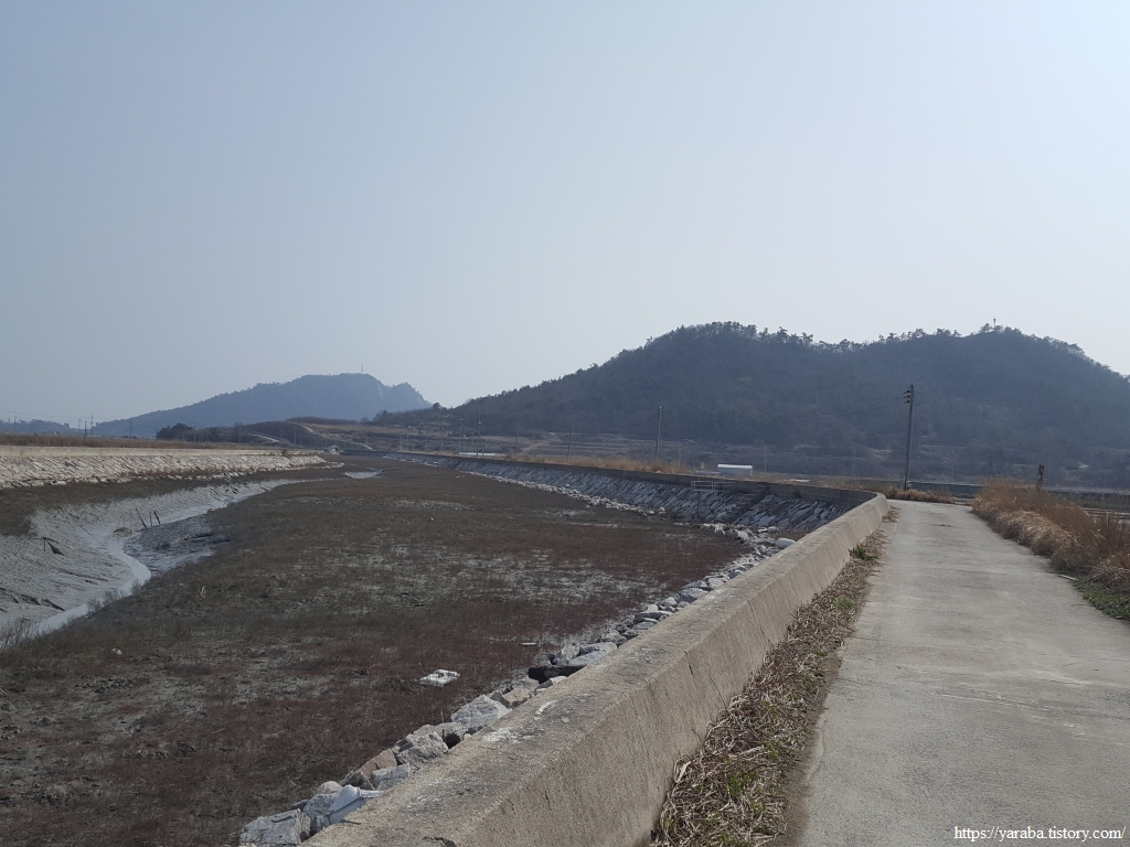 구불구불 이어진 불갑천을 따라 올라가는 길, 엄청난 제방을 쌓아 물길을 바꾸는 사람의 손도 억겁의 세월이 만들어 놓은 물길을 그냥 무시할 수는 없었나 보다 하는 생각을 해본다.