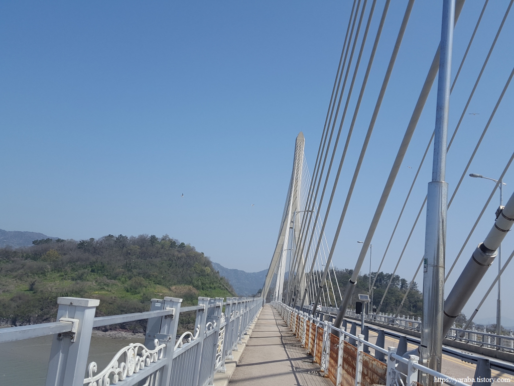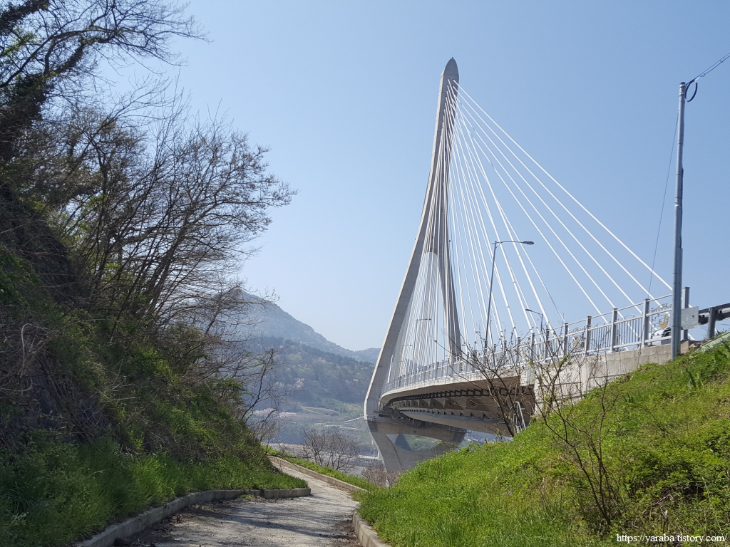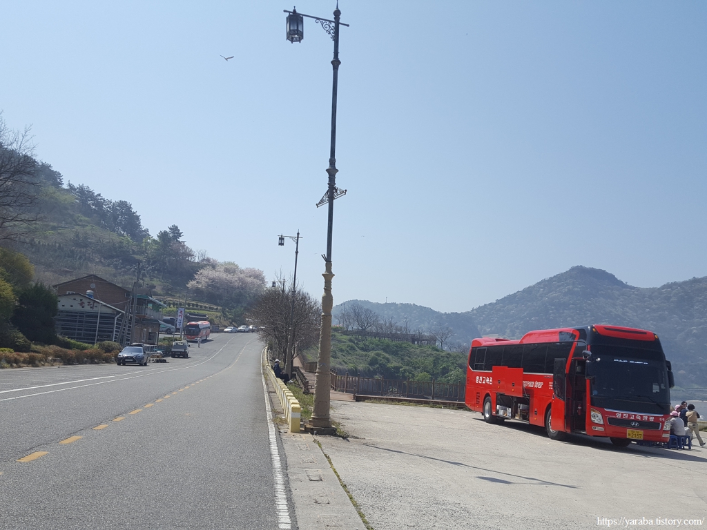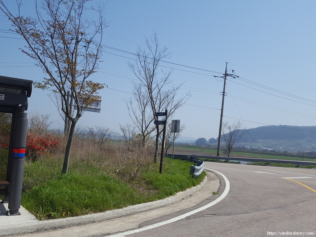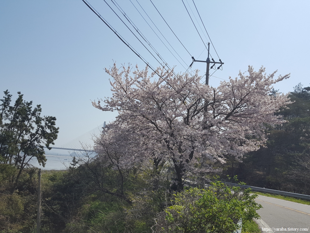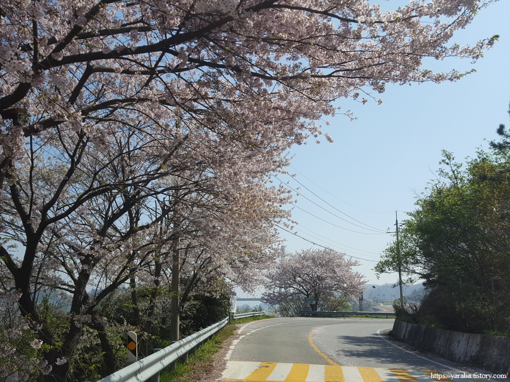 봄기운이 완연하지만 그늘로 가면 쌀쌀하고 양달로 가면 따스하다. 도로변으로 활짝 핀 벚꽃을 감상하며 도로를 따라 길을 이어간다.