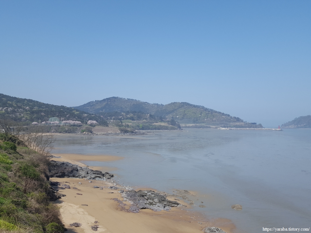 영광대교로 연결되는 목단교차로 근처에는 주차장, 화장실과 함께 작은 쉼터가 있었는데 모래미 해수욕장 방면의 풍경을 바라보며 잠시 휴식을 가진다.