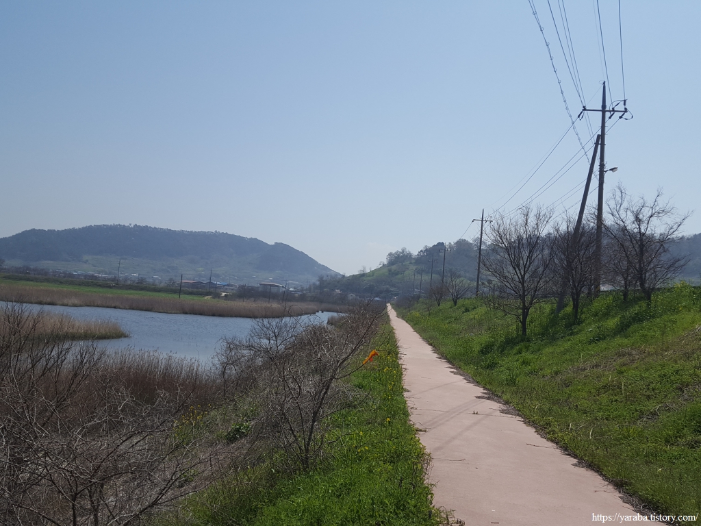 길은 목맥마을 입구에서 동쪽으로 방조제에 마련된 산책길을 걷는다. 구암천 하구를 막은 방조제이다.