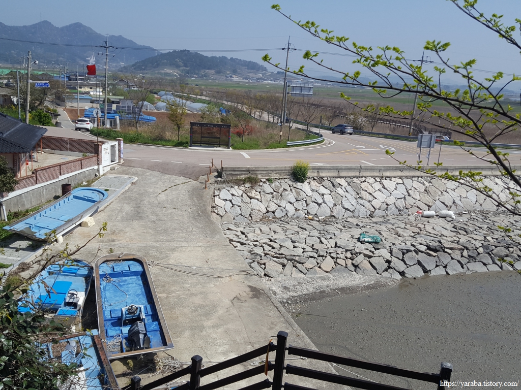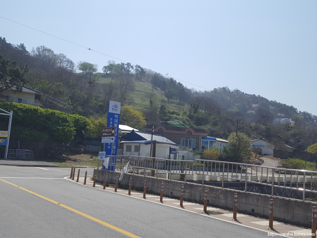 구암천 하구 방조제 길을 지나온 길은 백제불교최초도래지 쪽으로 우회전하여 해안선을 따라 남쪽으로 내려간다.