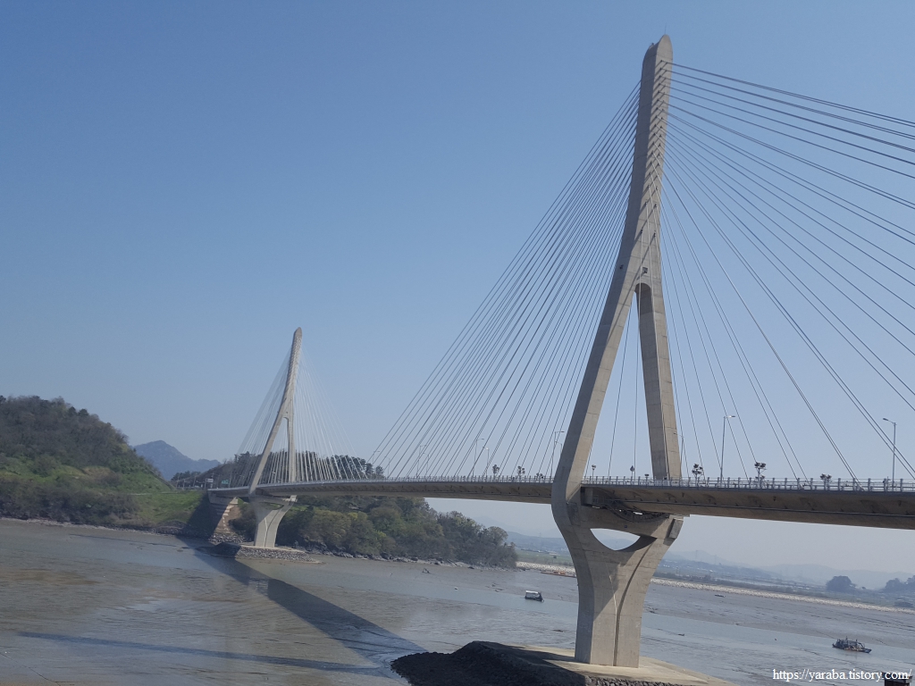 77번 국도가 지나는 영광대교의 인도를 따라서 다리를 건넌다. 다리 아래로는 전북 고창군과 전남 영광군의 경계에서 발원하여 서해로 흘러 내려온 와탄천이 흐른다.