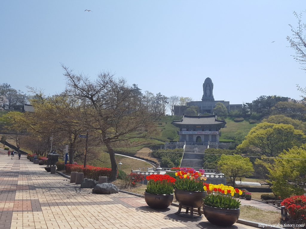 튤립이 한창인 백제불교최초도래지에 도착했다. 4세기 백제 침류왕 때 인도의 고승 마라난타가 처음 들어온 곳이 법성포라고 한다. 법성포라는 이름이 성인이 불법을 가지고 들어온 포구라는 의미라고 하니, 법성포하면 굴비만 떠올릴 일이 아니다.