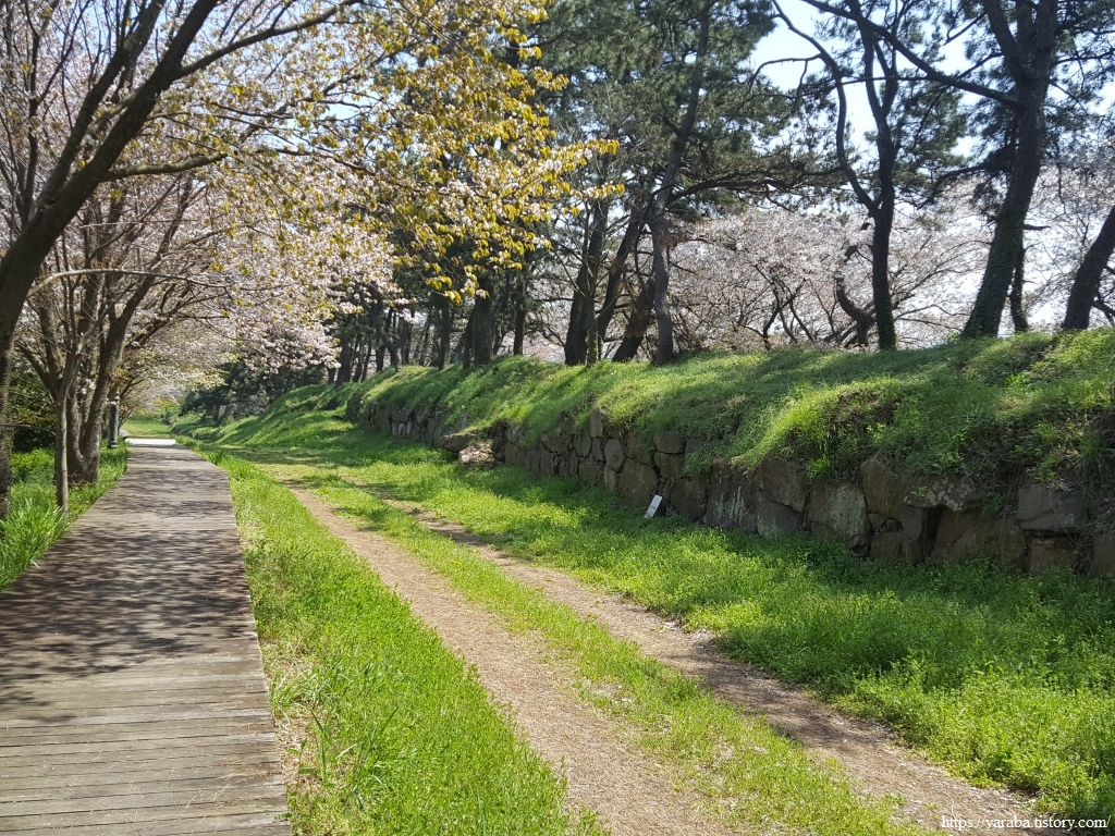 공원 주차장과 주차장 사이를 이어주는 데크길을 걸어 동쪽으로 이동한다.