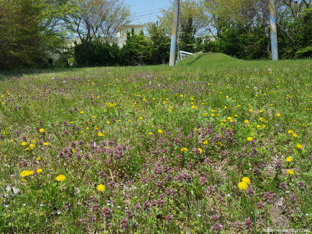 산을 내려오니 명절 때면 사용하는 그네도 설치되어 있었는데 필자의 시선에는 그네 보다 바닥에 깔린 민들레와 들풀들이 더 주목된다. 사람들의 발길 밟히는 위치에 있어도 나름의 삶을 살아간다. 훌륭하다.