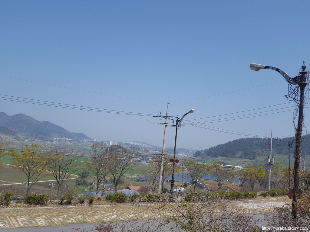 데크길을 지나서 또 다른 주차장 쪽으로 나오니 홍농읍 방면의 평야가 시야에 들어온다. 40코스로 우리가 걸어가야 할 길이다.