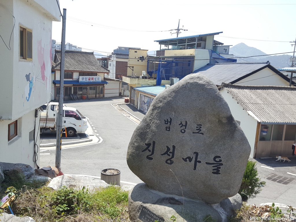 법성진성을 올려다 보닌 진성마을을 벗어나면 굴비 가게들을 가로질러 해안으로 나간다.