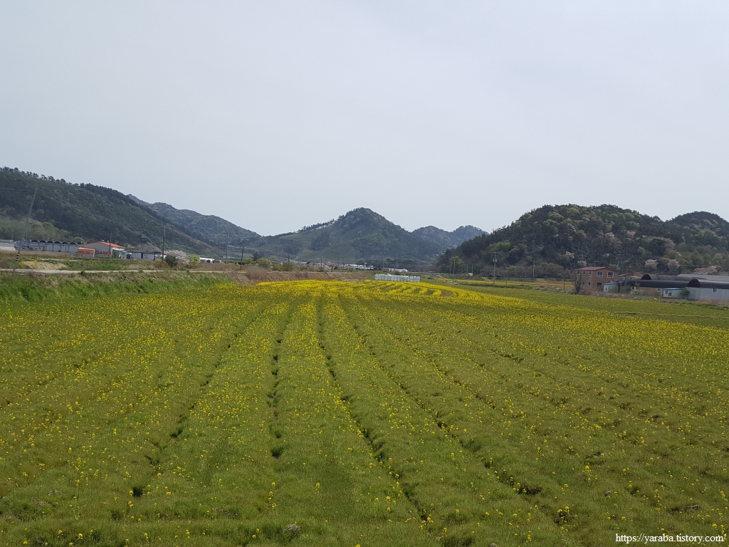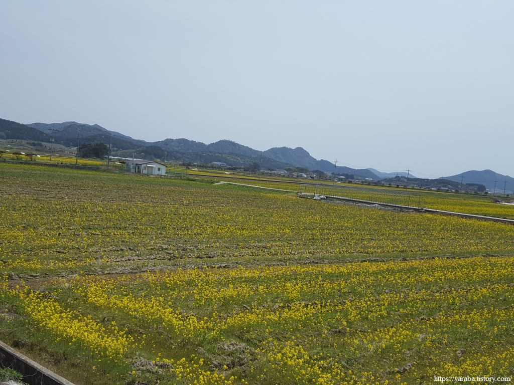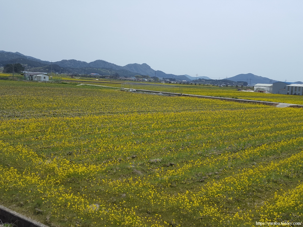 논에 유채를 심어서 봄이면 청보리와 함께 유채를 경관 농업으로 활용하고 모내기 전에 갈아엎어서 녹비작물로도 활용하는 지혜로운 선택이지 않나 싶다. 논에 가득한 유채를 처음 만나는데 정말 특이한 풍경이다.