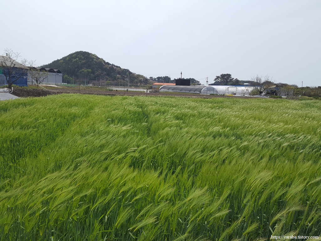 바람에 나부끼는 청보리 물결도 만난다. 강한 바람에 이리저리 흔들리는 보리 이삭의 물결이 환상적이다. 이번 여행은 뜻하지 않게 제대로 된 봄 구경을 한다.