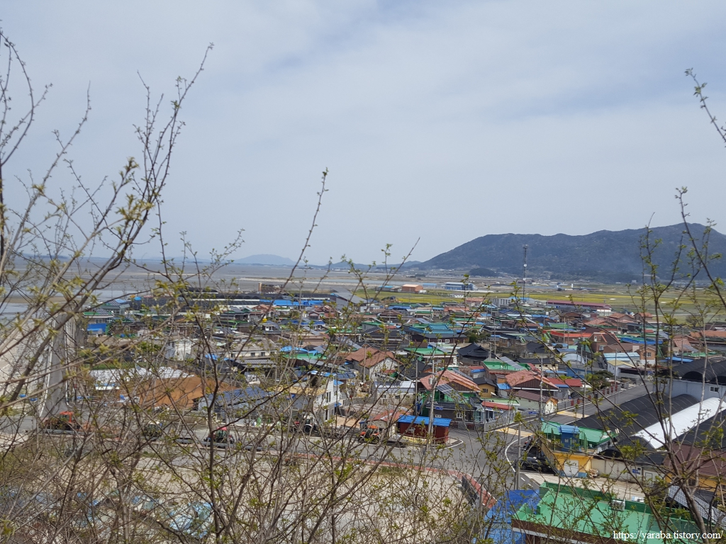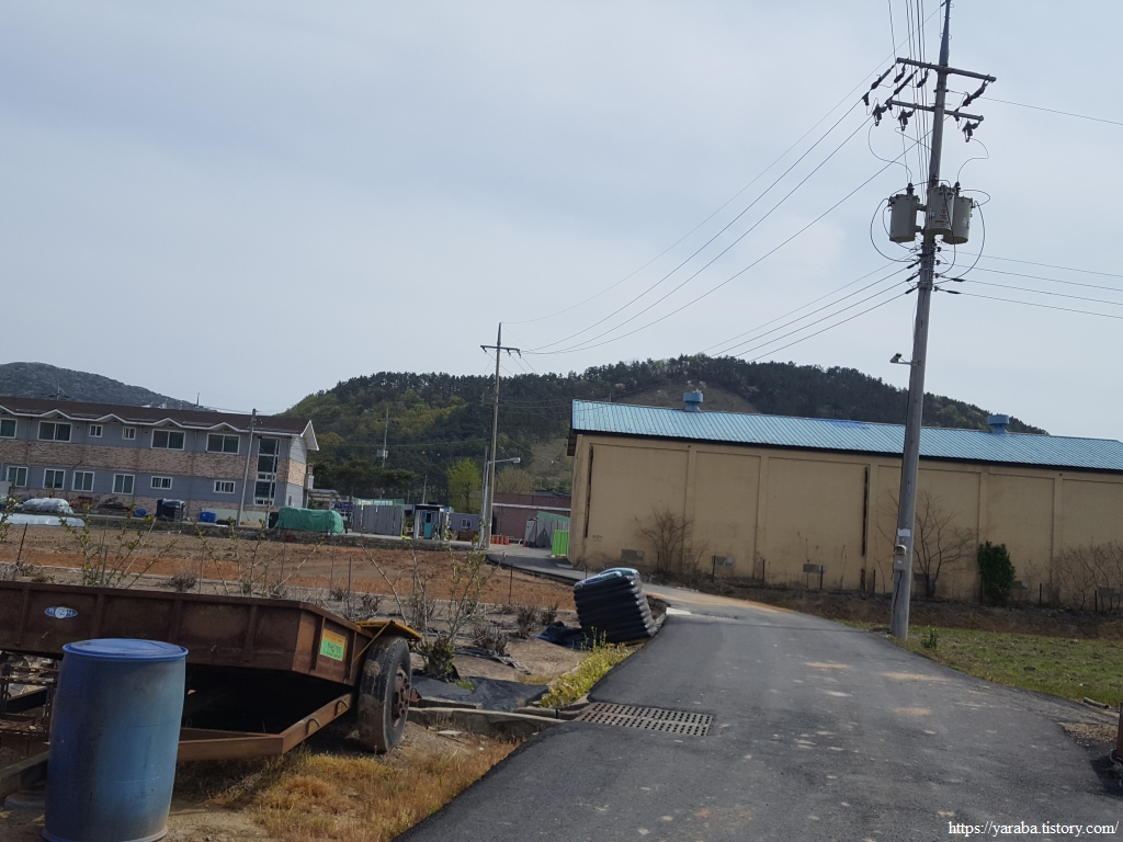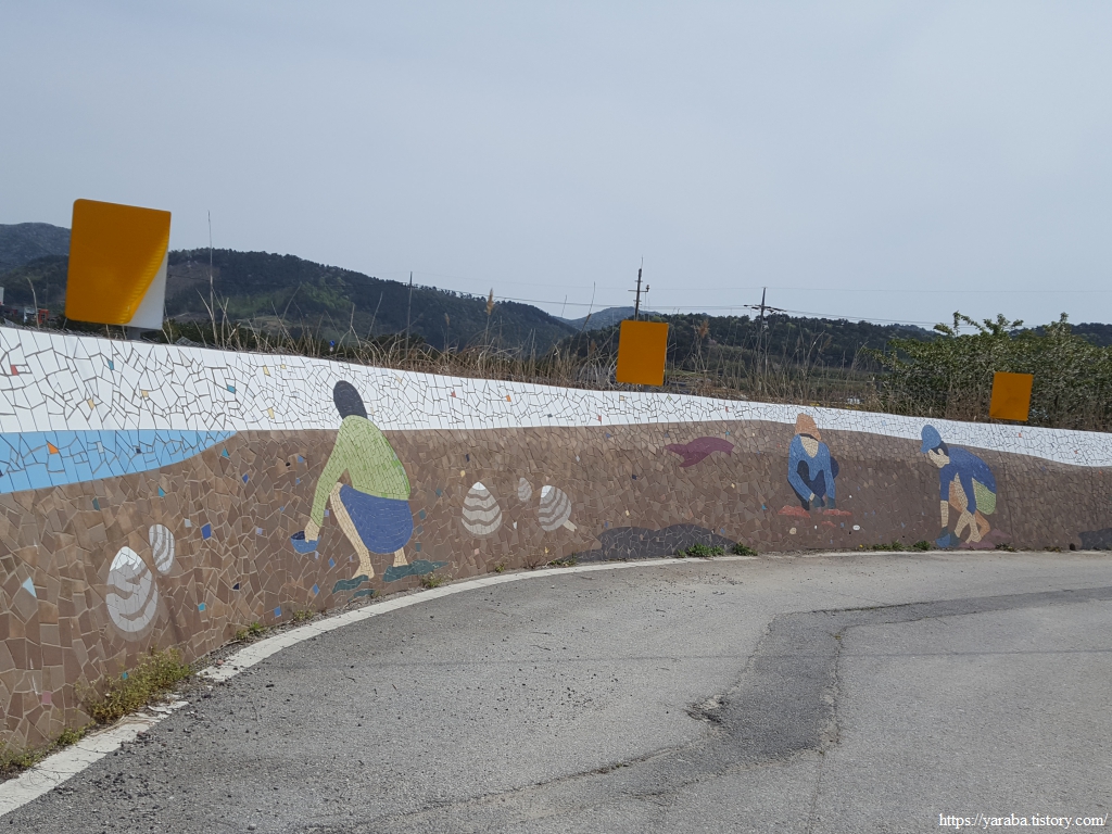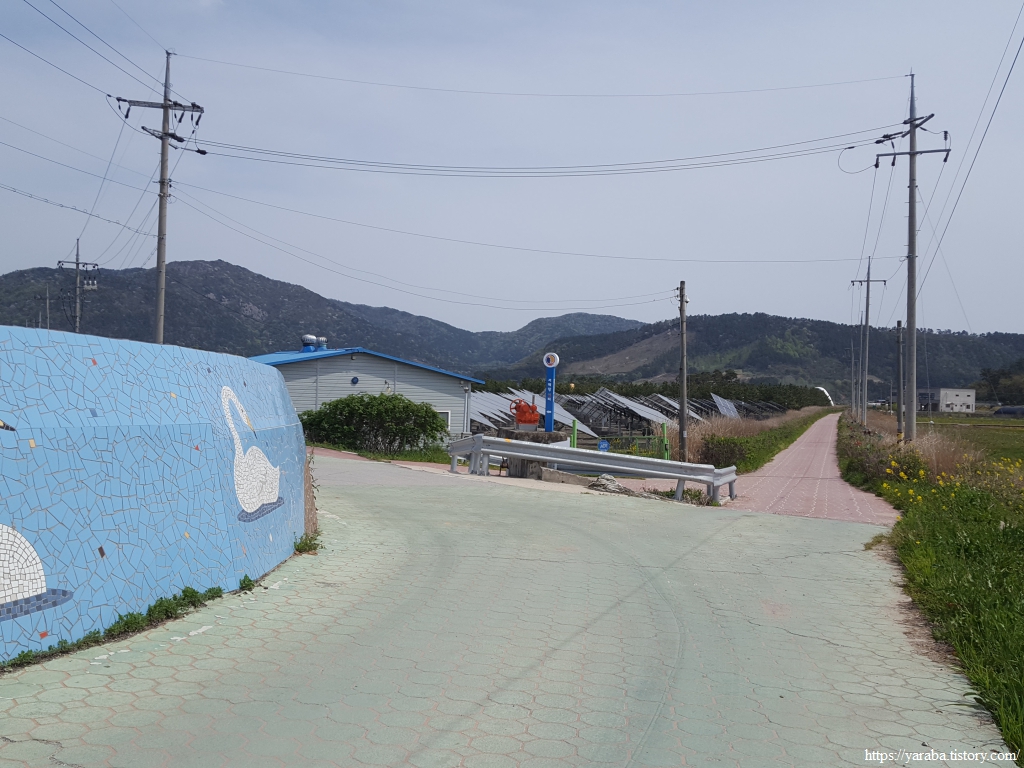 계명마을 쪽으로 내려가는 길, 만돌어촌체험마을에 운영하는 트랙터들이 줄지어 서있다. 사람들이 몰려오는 성수기 때는 하루에 5천 명도 갯벌을 찾는다고 하니 그때가 되면 저 많은 트랙터들도 쓸모가 있겠다 싶다.