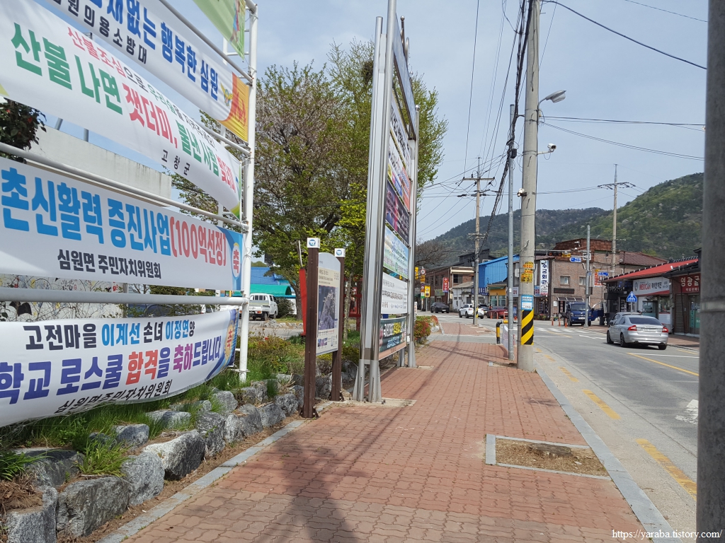 마산마을을 지나서 큰길로 나온 길은 심원면 면사무소 앞에서 여정을 마무리한다.