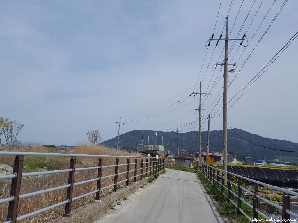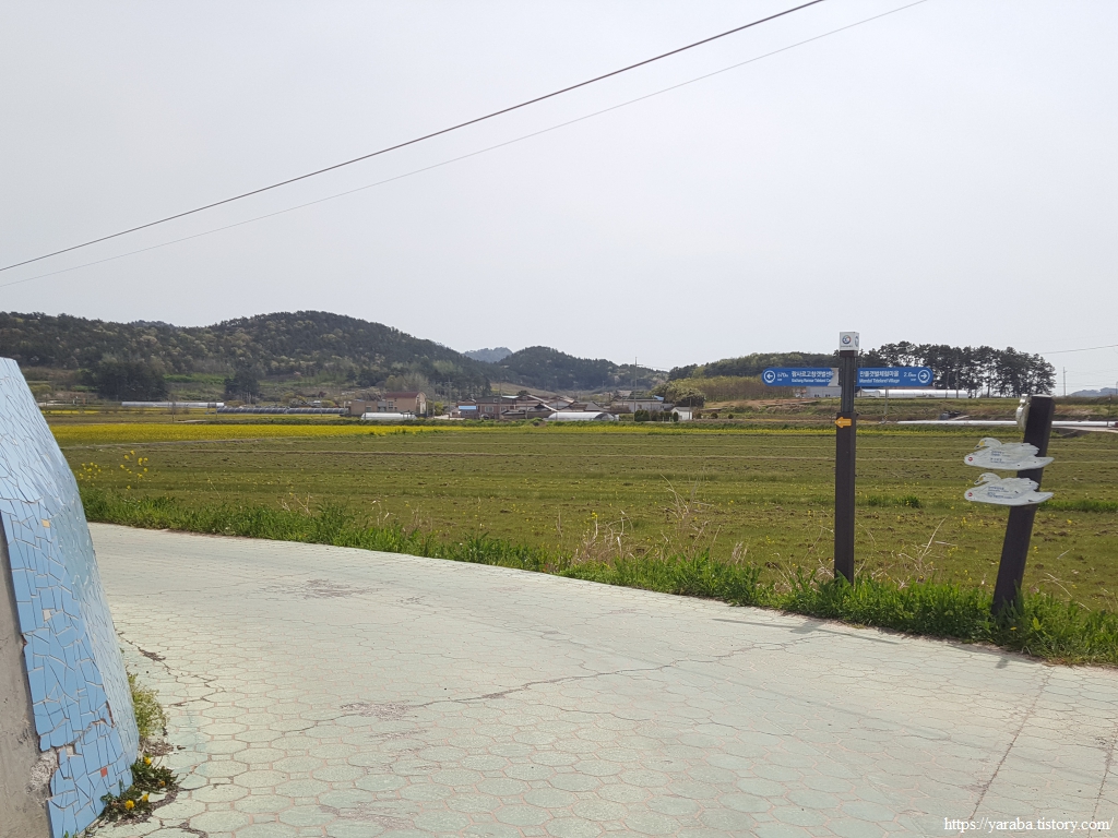 갯벌 센터를 지나 심원면 읍내로 들어가는 길, 심원면 두어리에서 월산리로 넘어간다. 이쪽 논은 잡초와 유채가 함께 자라는지 노란 유채꽃이 군데군데 수줍게 고개를 내밀었다.