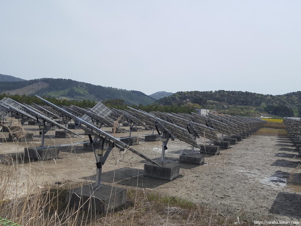 갯벌 센터로 가는 길에는 태양 추적식 태양광 발전 시설도 설치되어 있었다. 갯벌 센터 인근을 지나면서 드는 생각은 갯벌에서 할 수 있는 모든 것을 시도하고 있구나 하는 생각이다.