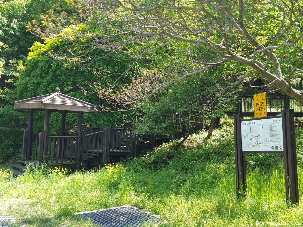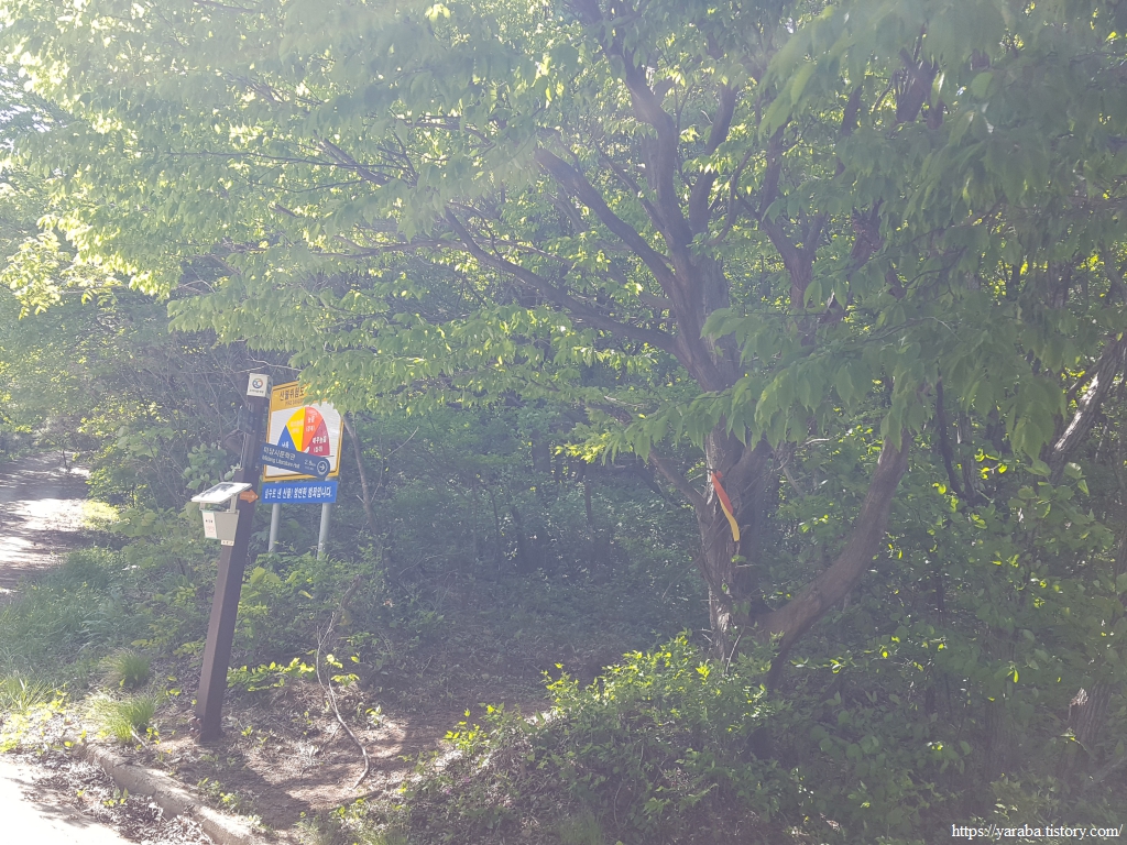 저수지 옆의 임도를 걷다 보면 산림경영모델숲이라는 안내판이 등장하는데 전국 곳곳에 수행되고 있는 사업으로 산림을 목재 생산뿐만 아니라 주민들이 수익을 얻을 수 있는 임산물을 재배하고 기타 연구하는 목적으로 활용하고자 하는 것이란다.
