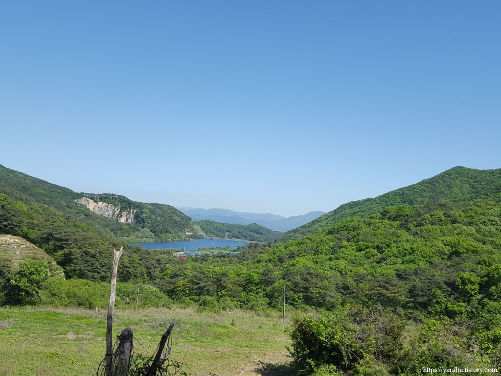 연기제 저수지로 올라온 길은 저수지 둑을 가로질러 저수지를 우측으로 감싸며 돌아간다. 저수지를 돌아가면서 완만하게 고도를 올린다.