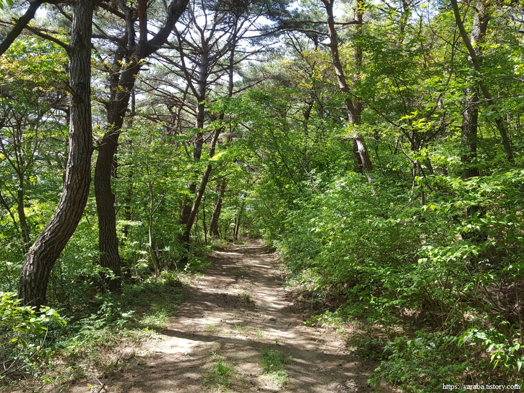 소요산(逍遙山, 445m) 자락의 고개를 넘으면서 자꾸 드는 생각은 경기도 동두천에 있는 소요산(逍遙山)과는 어떤 연관성이나 하는 호기심이다. 한자는 똑같다. 소요(逍遙)의 단어적인 의미는 정처 없이 마음 가는 대로 천천히 걷는 것을 의미한다. 어느덧 길은 연기재 고개를 넘어선다.