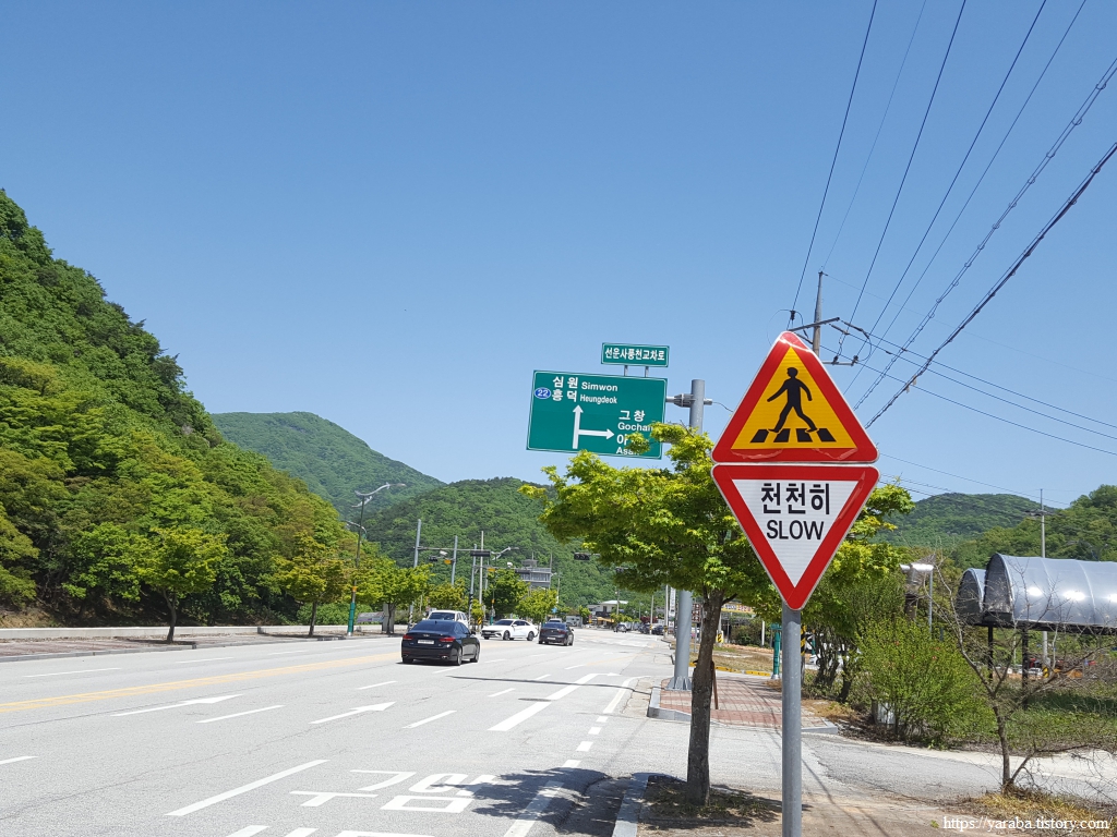 삼인리라는 명칭은 42코스를 끝내면서 공원 입구에 있는 천연기념물 삼인리 송악나무를 보며 처음 접했지만 사실 선운사를 포함한 계곡 일대가 모두 고창군 아산면 삼인리에 속해 있다. 그리고 선운산으로 들어가는 계곡 입구, 삼인리 끝자락으로는 길 양쪽으로 대형 풍천 장어 식당들이 즐비하다. 때마침 점심시간이라 식당들은 사람들로 북새통이다. 곳곳에서 풍겨오는 장어 굽는 냄새가 우리의 후각을 자극하지만 우리는 갈길이 멀다.
