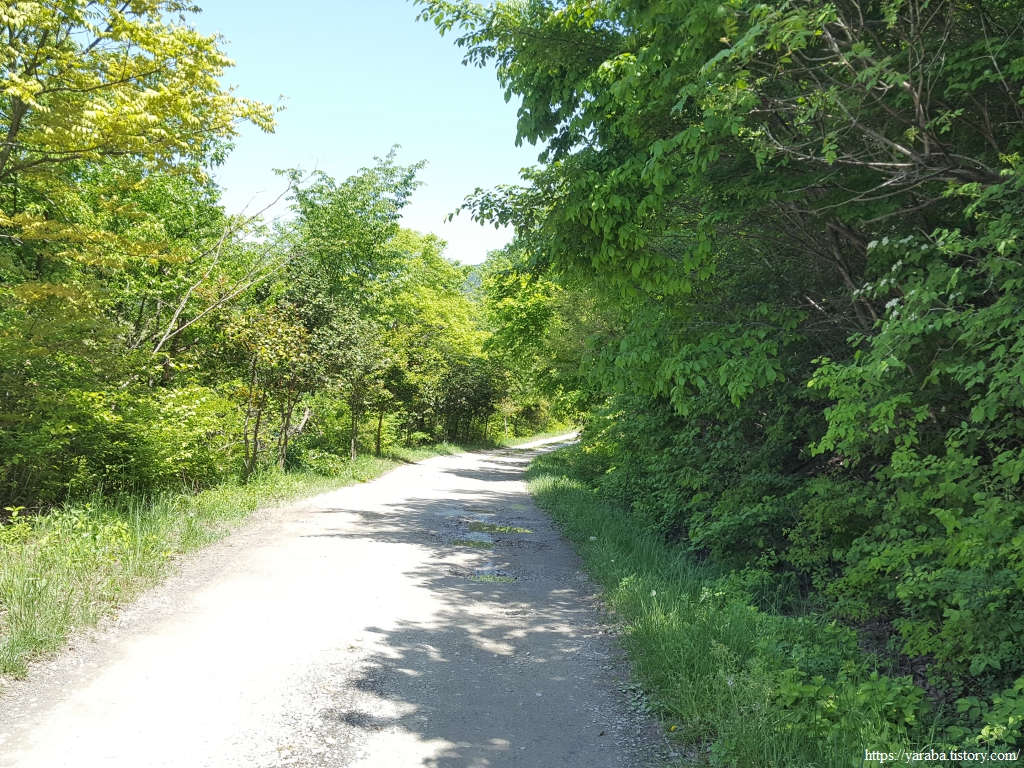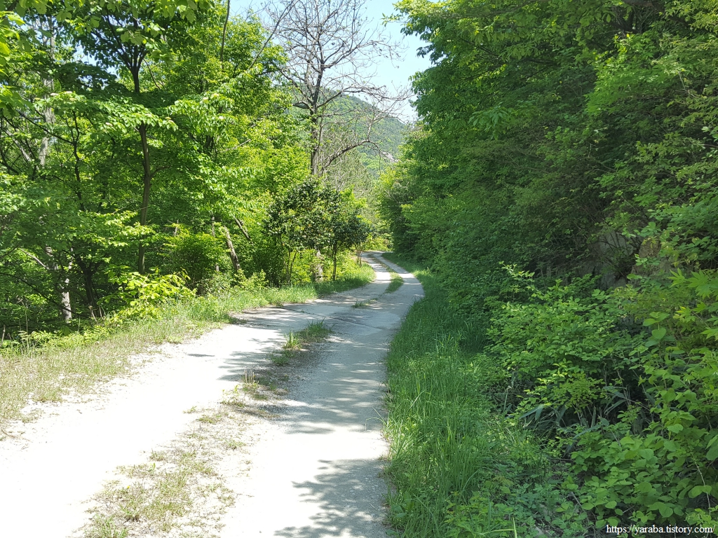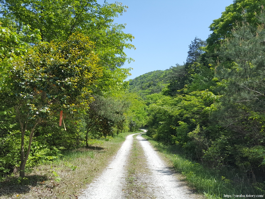 깔끔하게 정비된 임도는 연기재 고개로 오르막길을 이어간다.