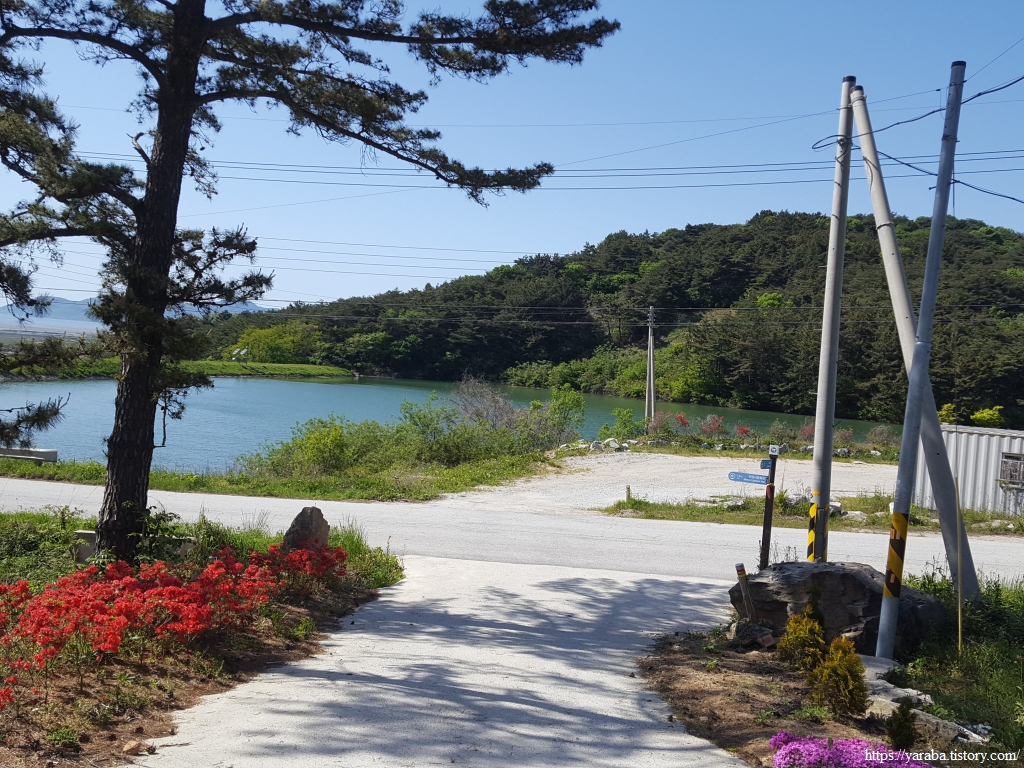 나무 그늘을 밟으며 저수지 우측을 따라 길을 이어간다.