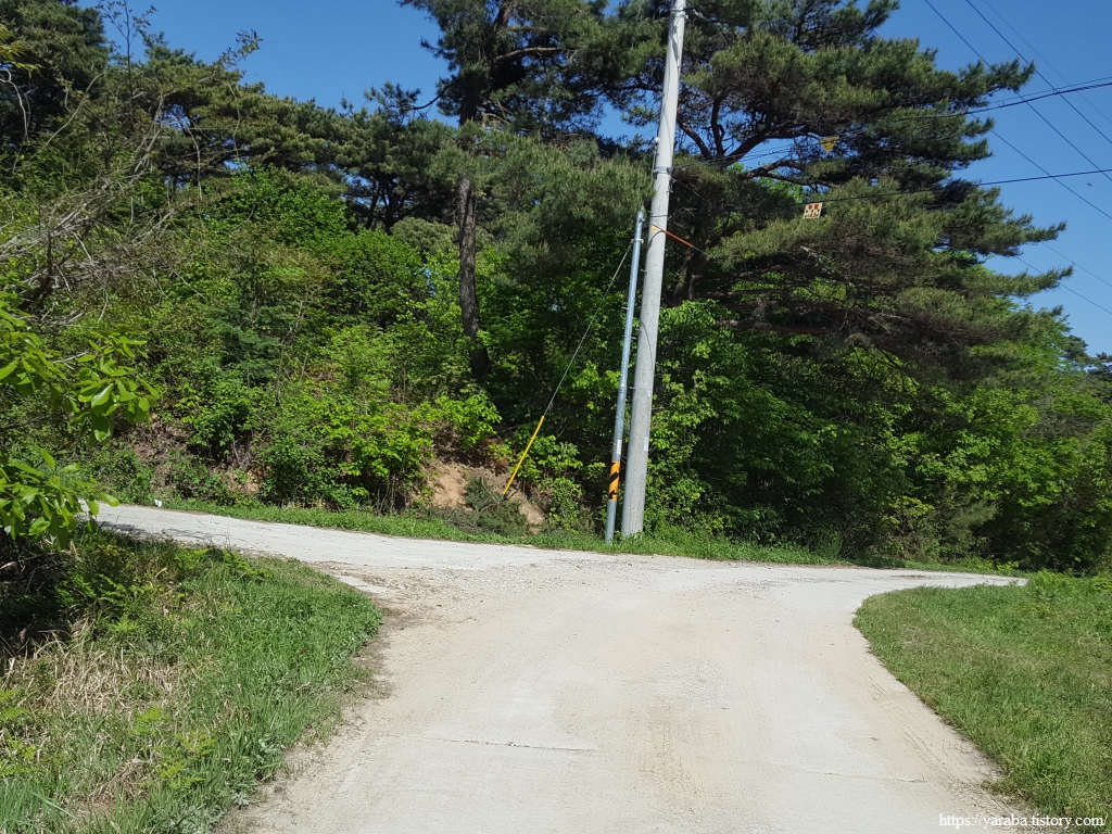 질마재 고객 갈림길에 도착하면 좌측 임도를 따라 이동하여 원래의 길과 합류한다.