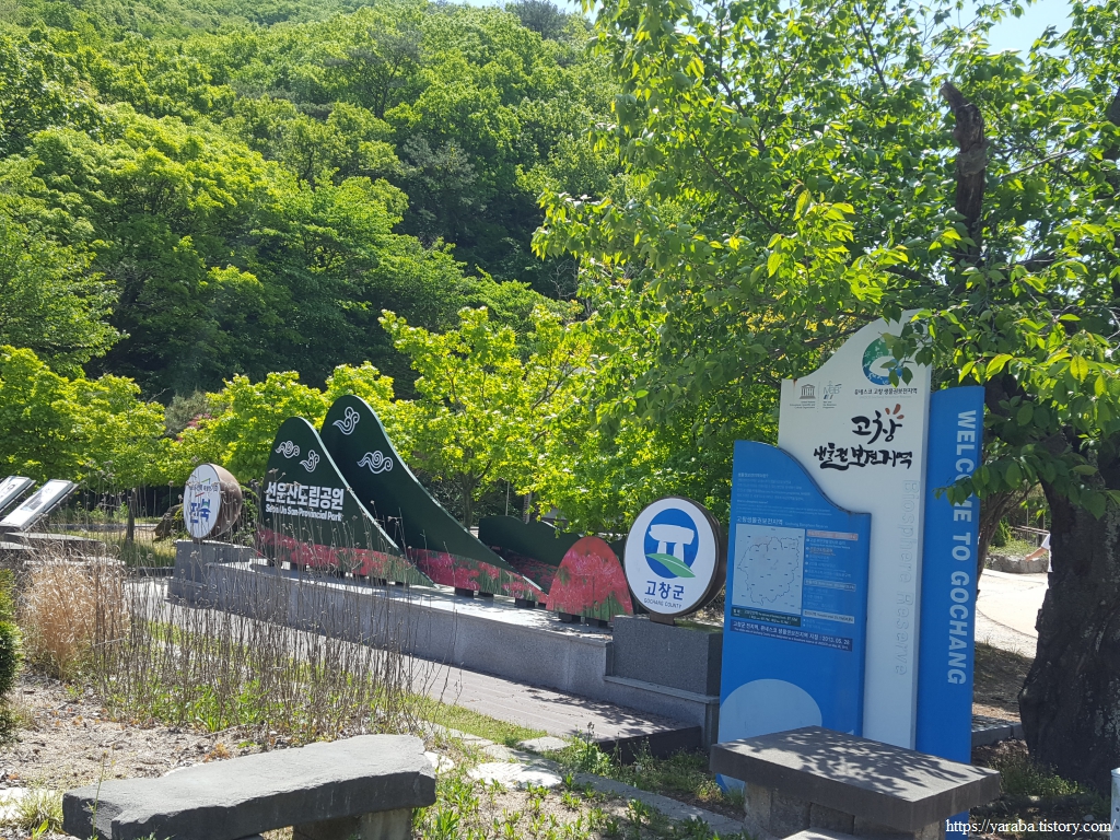 선운산 일대는 생물권 보전 지역이기도 하고 국가 지질 공원이기도 하다. 주차장 옆에 지질 공원 관련 조형물을 세워 놓았는데 낙조대, 천마봉, 용문굴 등 서해랑길 42코스에서 지나왔던 암석 지대가 지질공원의 주요 포인트이다.