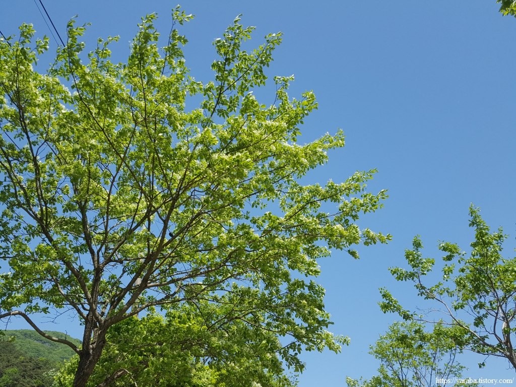 그래도 연기저수지로 향하는 길은 나무들이 있어서 좋다. 키가 큰 이팝나무도 하얀 꽃을 피우고 향기를 내뿜고 있다.