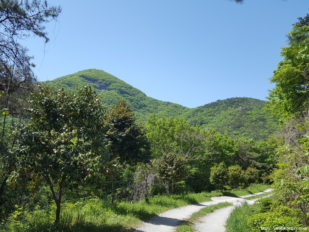 연기재 고개를 지나면 하산길에 접어드는데 원래의 코스는 질마재로 도로 위쪽에 있는 산행길을 걷지만 지도를 보니 질마재 고개에서 원래의 길과 합류할 수 있으니 그냥 편하게 임도를 따라 걷기로 했다.