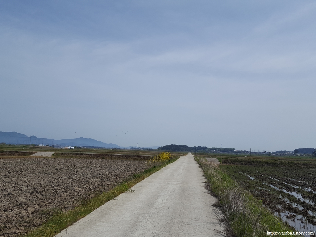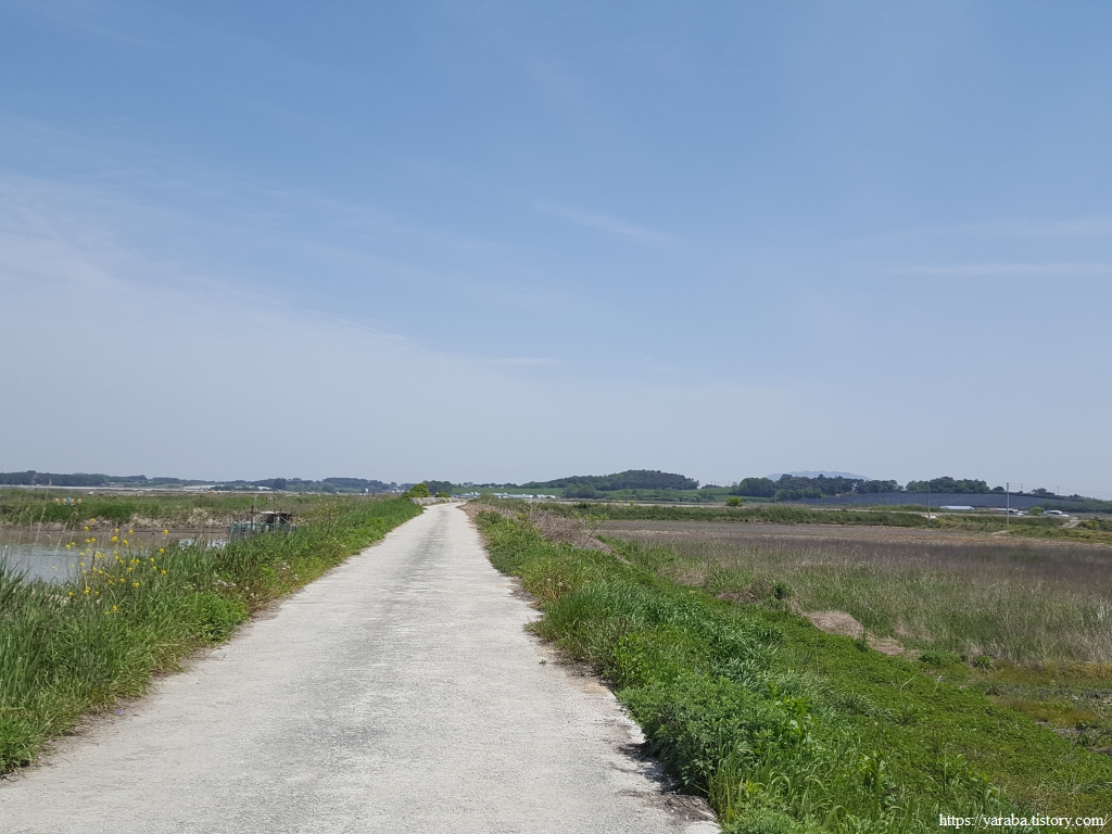 흥덕읍내에서 하룻밤 쉬고 돌아온 우리는 농로를 따라서 해안 방향으로 나간다.